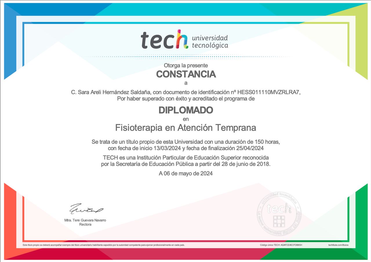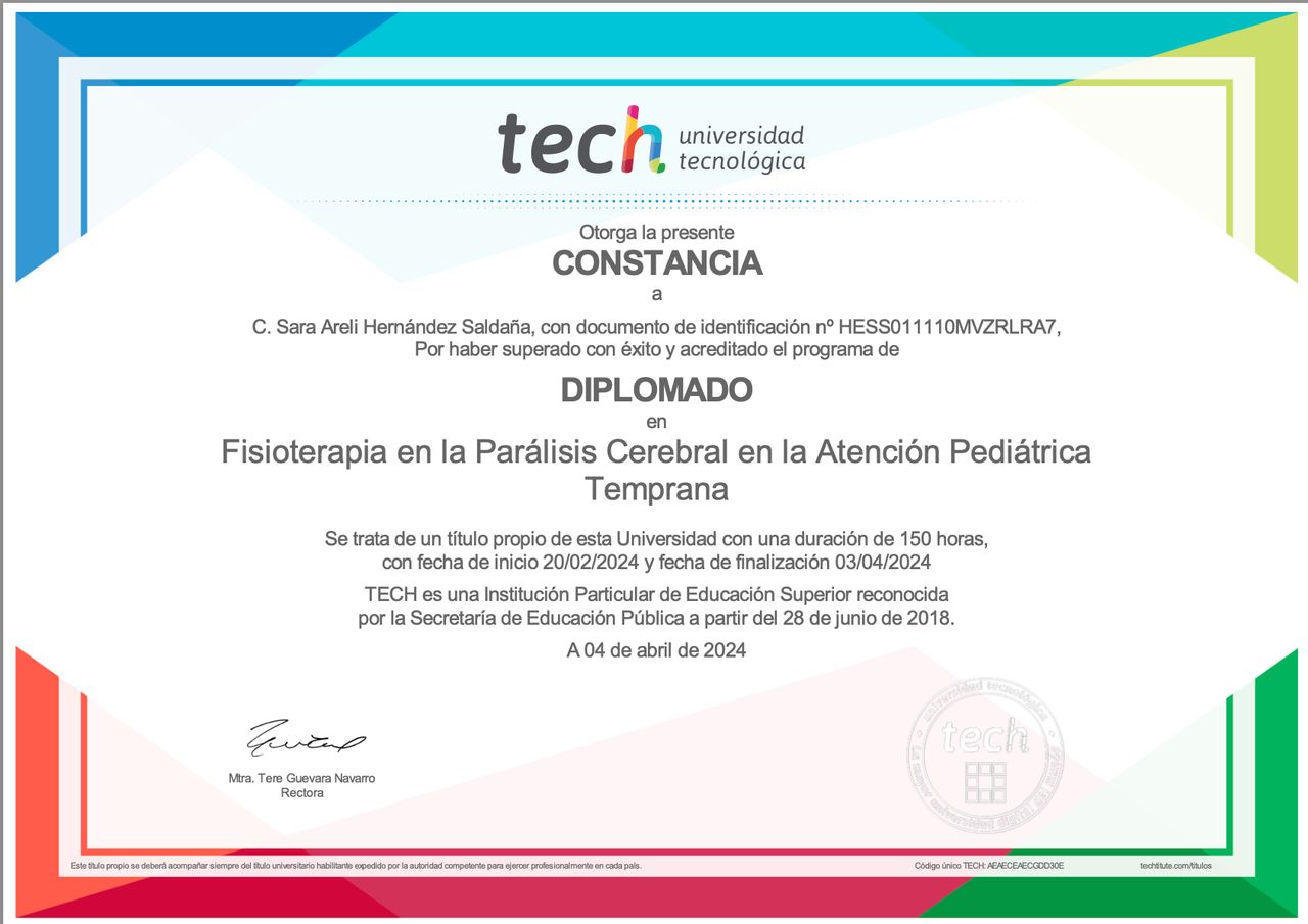 Cuento con diplomados en Atención Temprana, Atención Temprana en la Parálisis Cerebral, y en Lactancia Materna, lo que me permite acompañar de forma especializada a bebés y niños con alteraciones neuromotoras desde sus primeras etapas de vida. Asimismo, en el Instituto Nacional de Rehabilitación me preparé en la prevención, manejo y rehabilitación de patologías de cadera, un área clave para prevenir secuelas funcionales a largo plazo.