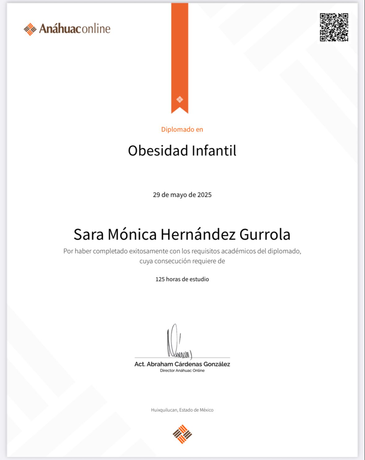 Consciente de los nuevos retos de salud que enfrentan nuestras infancias, recientemente concluí mi diplomado en Prevención y Tratamiento de la Obesidad Infantil, con el objetivo de brindar herramientas actualizadas y efectivas a las familias que acompañan el crecimiento de sus hijos. La obesidad infantil es una problemática urgente que afecta la salud presente y futura de los niños, y requiere un enfoque integral y sensible.