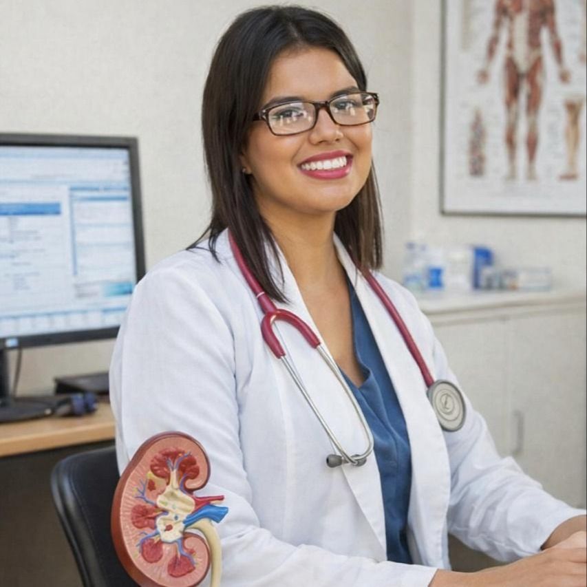 "Hola, soy la Dra. Sara Jaqueline Pulido de la Cruz, nefróloga. Me especializo en cuidar la salud de tus riñones.