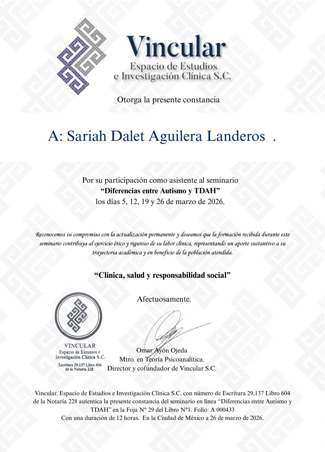 Lic. Sariah Dalet Aguilera Landeros