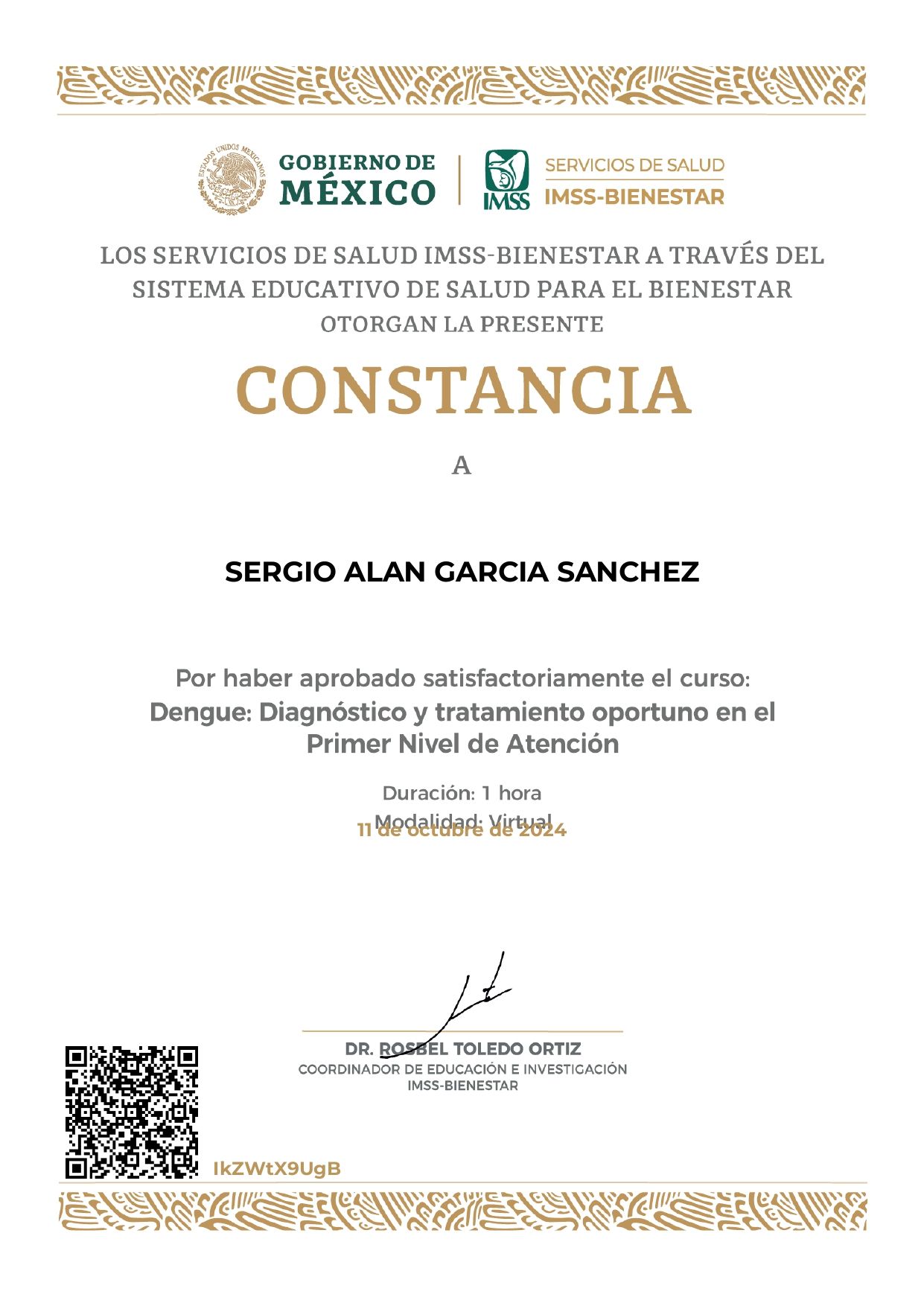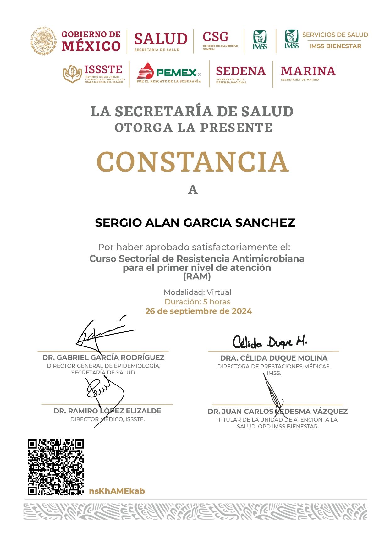 1.- CALIDAD: médico certificado por el CONAMEGE.
