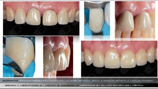 La aplicación de cerómeros es un arte que necesita gran capacitación y habilidad del profesional. Los cerómeros son un tipo de resinas dentales que son nombrados de esa manera debido a su alto contenido cerámico, proporcionando cualidades similares a la estructura dental perdida. En lo particular, la calidad de los materiales es lo primordial para realizar un buen trabajo aunado a la técnica de colocación que debe hacerse con mucha precisión, libre de contaminantes provenientes de la saliva. Es por esto que realizo un cuidadoso protocolo de aislamiento absoluto, donde se garantiza que no ingrese al diente recién preparado ningún agente contaminante y la adhesión sea precisa y duradera.