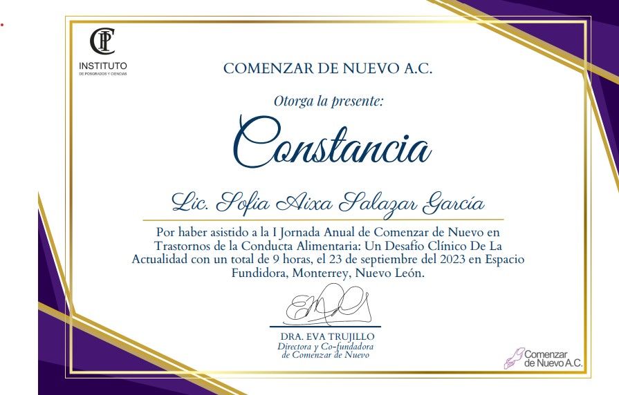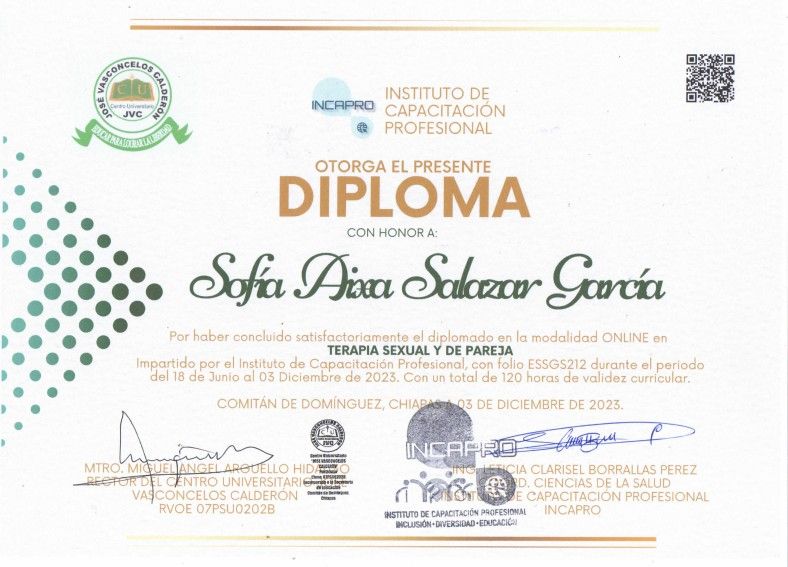 Considero fundamental ser un profesional que se mantenga actualizado con herramientas útiles para apoyar el proceso de cada uno de los pacientes , por lo tanto, he continuado con diplomados que apoyan mi formación como lo son :