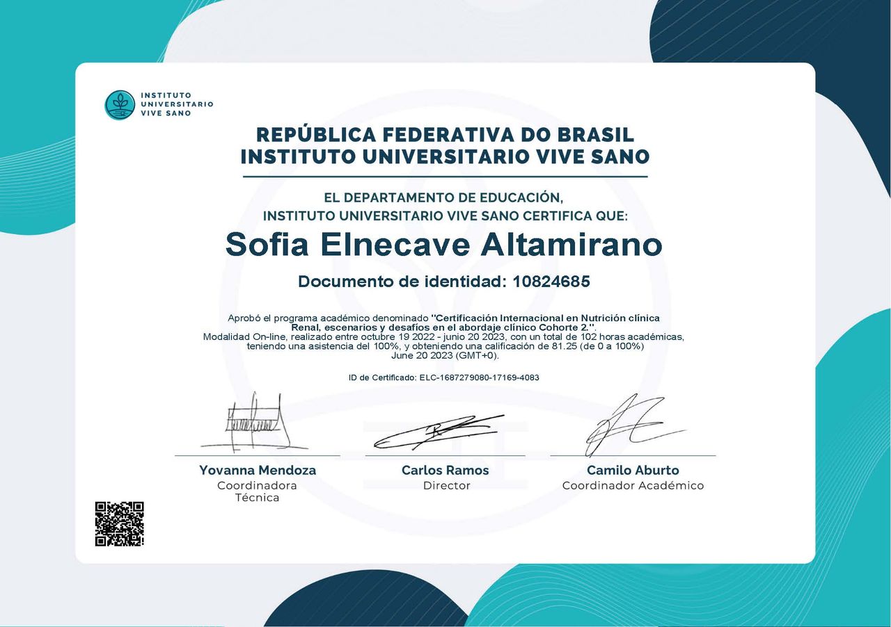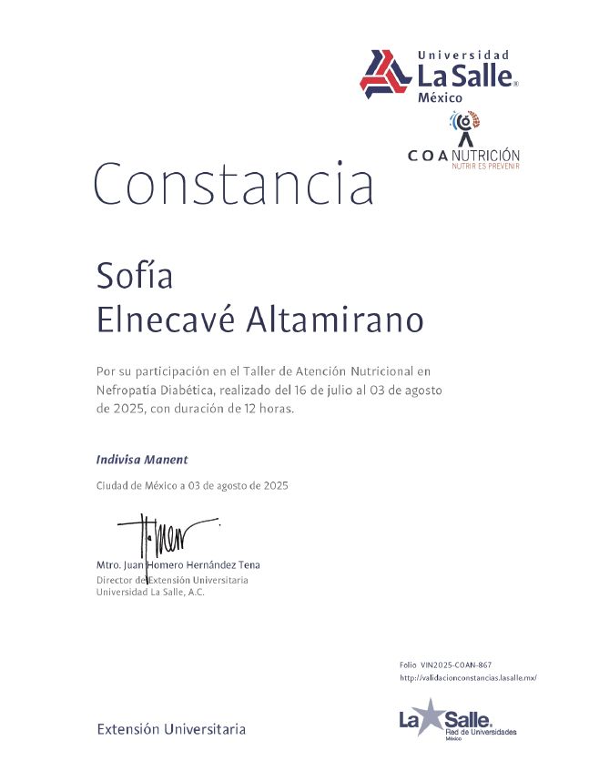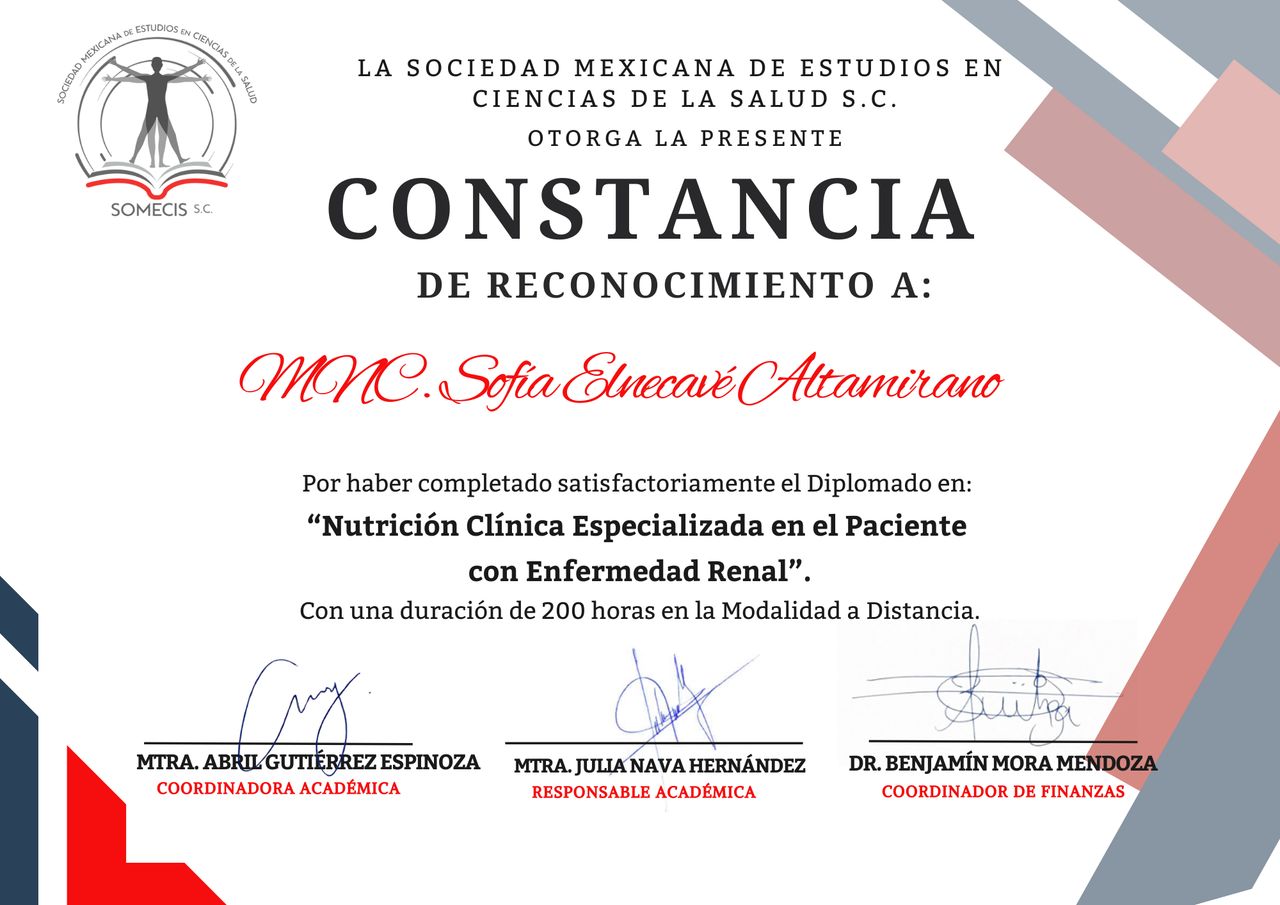 Nutrióloga clínica con enfoque en el manejo nutricio para pacientes con Enfermedad Renal Crónica, Cáncer, Diabetes mellitus y Control de Peso. Mi número de colegiado: 8617345.