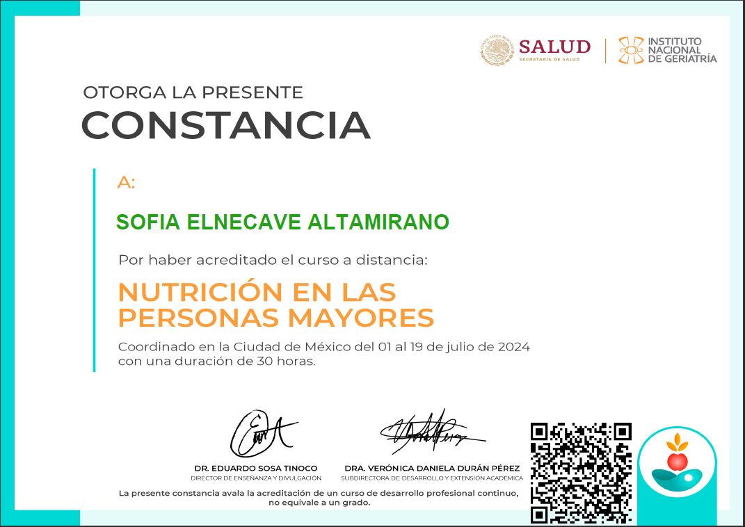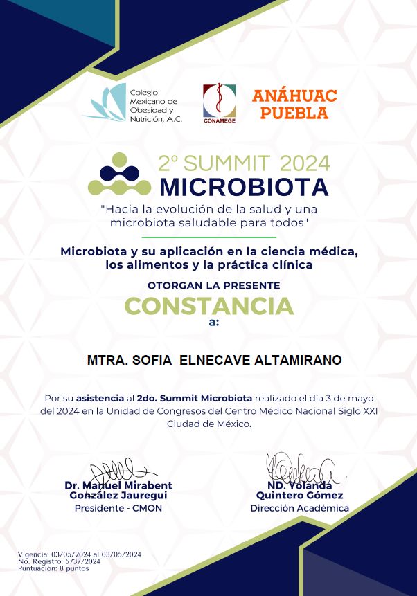 Egresada de la Maestría en Nutrición Clínica del Instituto Nacional de Salud Pública y el Instituto Nacional de Perinatología, en el año 2016. Licenciada en Nutrición por la Universidad Popular Autónoma del Estado de Puebla, Generación 2009 - 2013.