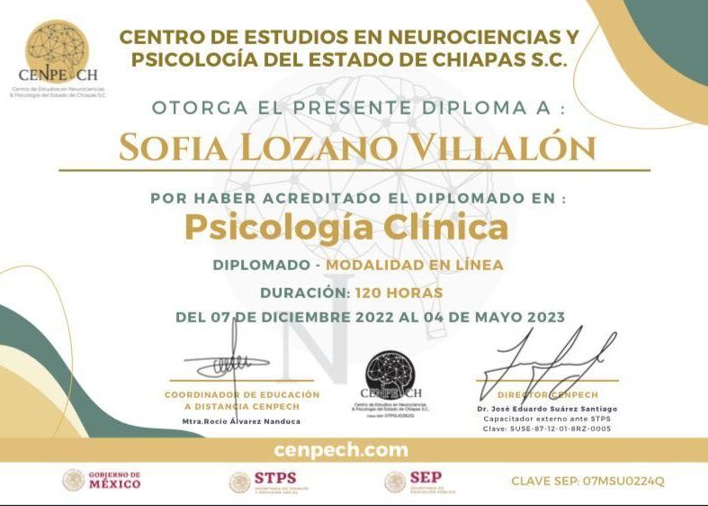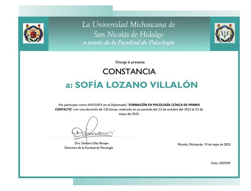 Es muy fácil hacer click con la psicóloga Sofi, escucha atentamente y tiene buenas dinámicas. Recomendada 100%