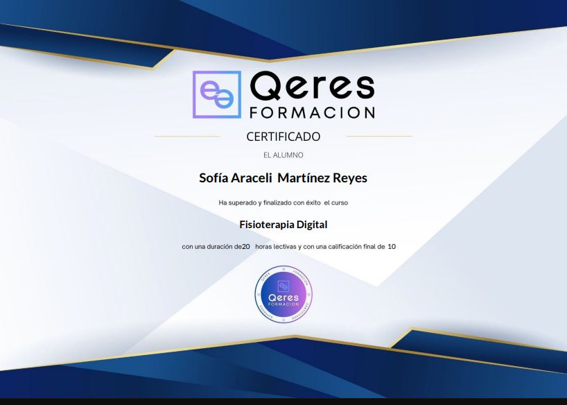 He finalizado mi certificación en Fisioterapia Digital, lo que me permite ofrecerte atención fisioterapéutica de forma online, segura y efectiva.