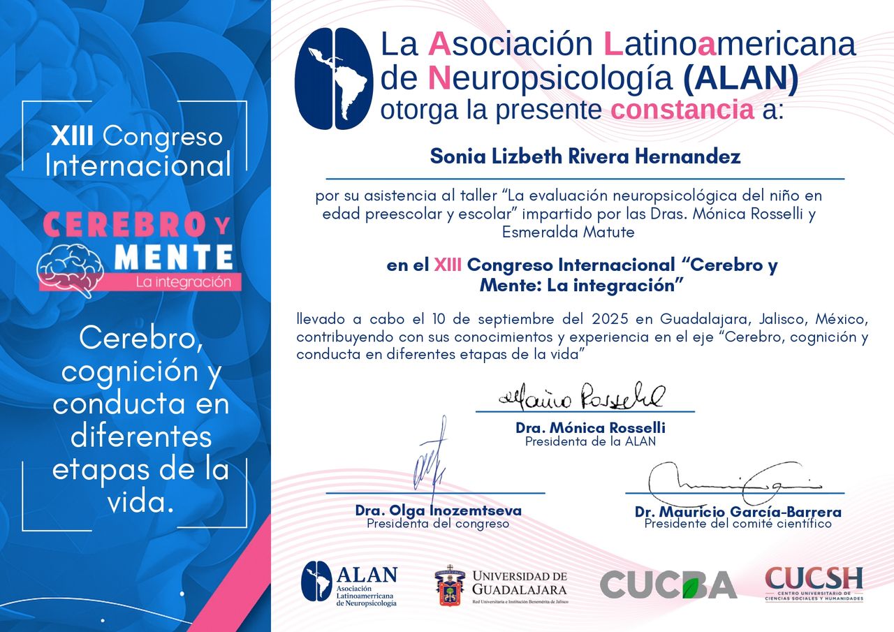 Cuento con un diplomado en Intervención Neuropsicológica Infantil, lo que me permite abordar de manera especializada dificultades en el neurodesarrollo, problemas de aprendizaje, conductuales y socioemocionales.