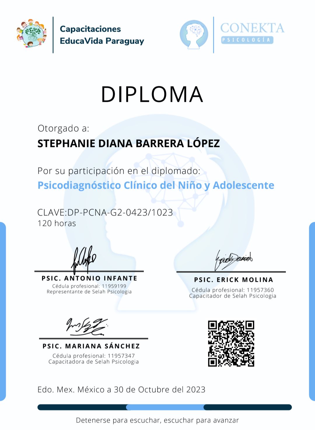 Excelente acompañamiento y empatía de proceso, evolución adecuada