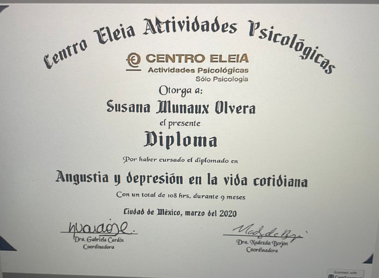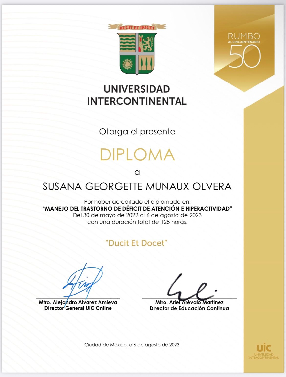 Cuento con diplomados para el abordaje de Trastorno por Déficit de Atención e Hiperactividad en adolescentes y adultos así como en depresión y ansiedad.