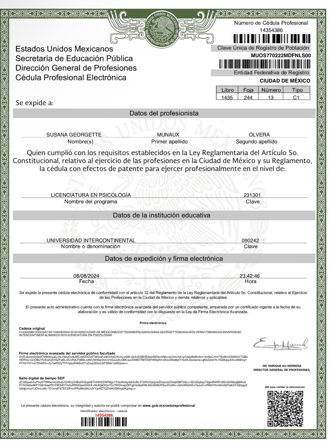 Soy Psicóloga clínica con 15 años de experiencia y estoy por terminar la maestria en Tanatología.