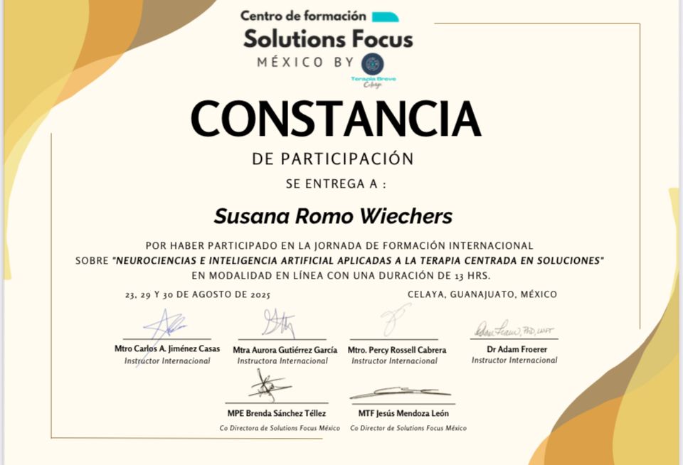 Estoy completamente satisfecho con mis sesiones con la doctora y la recomendación completamente• Susi Romo Psicoterapia Sistémica • Terapia individual •
