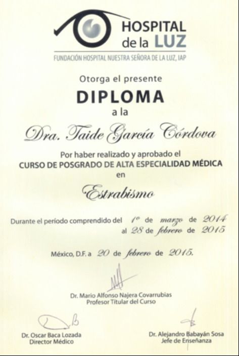 *Alta especialidad en Estrabismo realizada en "Hospital de la Luz" (Ciudad de México)