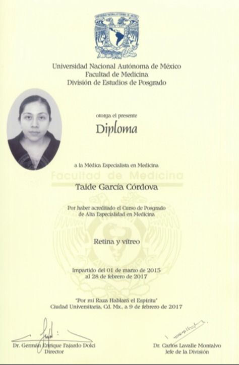 *Alta especialidad en Retina y Vítreo realizada en el "Insitituto Nacional de Rehabilitación" (Ciudad de México)