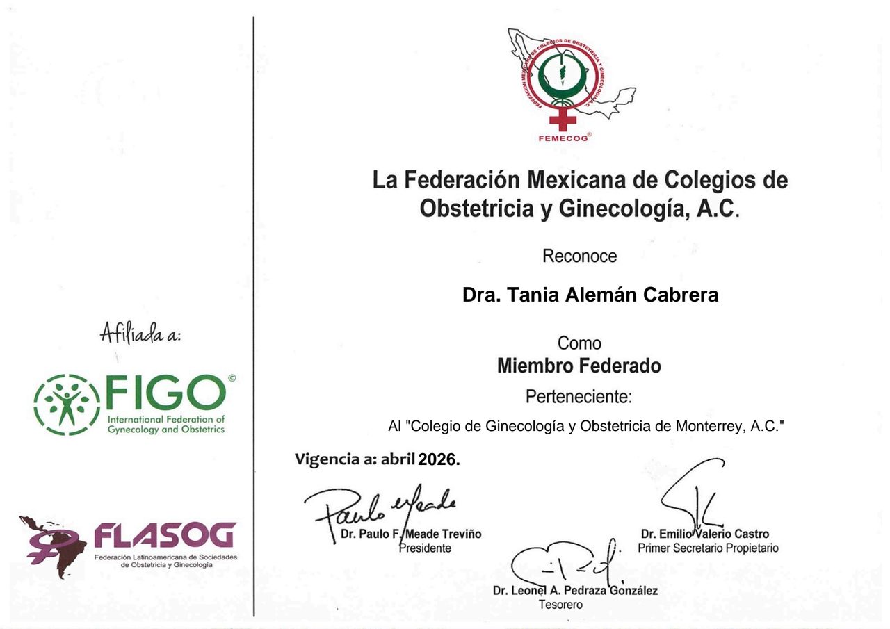 Hola, soy la Dra. Tania Alemán, especialista en Ginecología y Obstetricia.