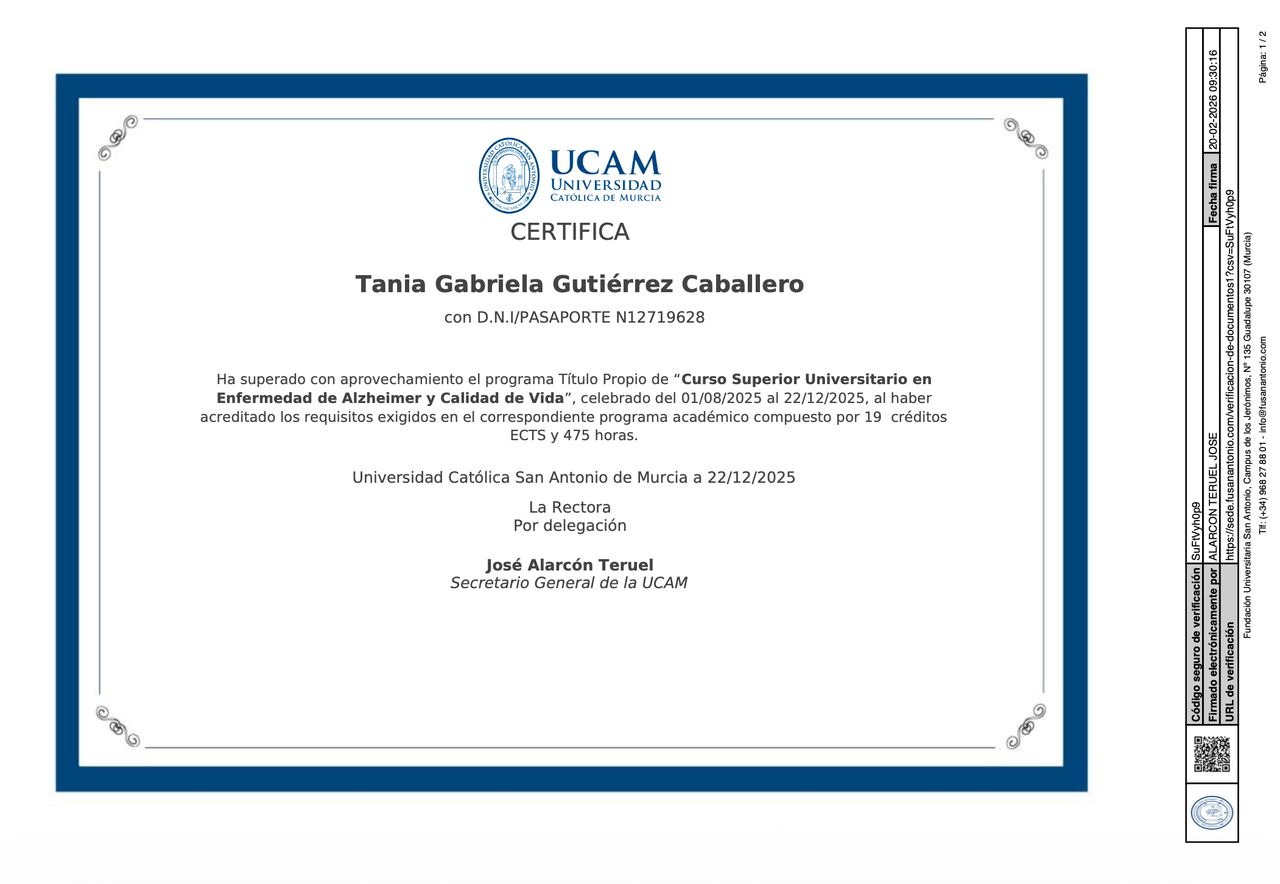 Soy la Dra. Tania Gabriela Gutiérrez Caballero, especialista en Geriatría con formación avanzada en deterioro cognitivo (problemas de memoria) y demencias, con un enfoque integral en la salud y calidad de vida de las personas mayores.
