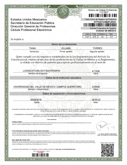 • LFT Tania Villamil Torres • Consulta subsecuente •