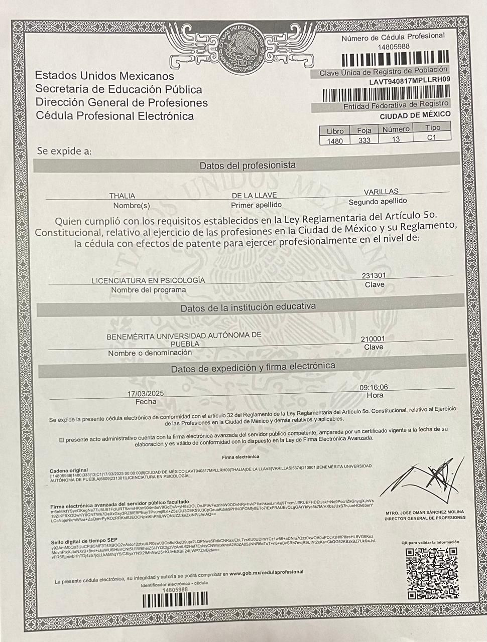 Soy una psicóloga apasionada por acompañar procesos de transformación real. Me mantengo en formación constante a través de cursos, lecturas y documentales que enriquecen mi práctica, porque creo que brindar lo mejor a cada persona requiere una actualización continua, curiosidad y profunda humanidad.