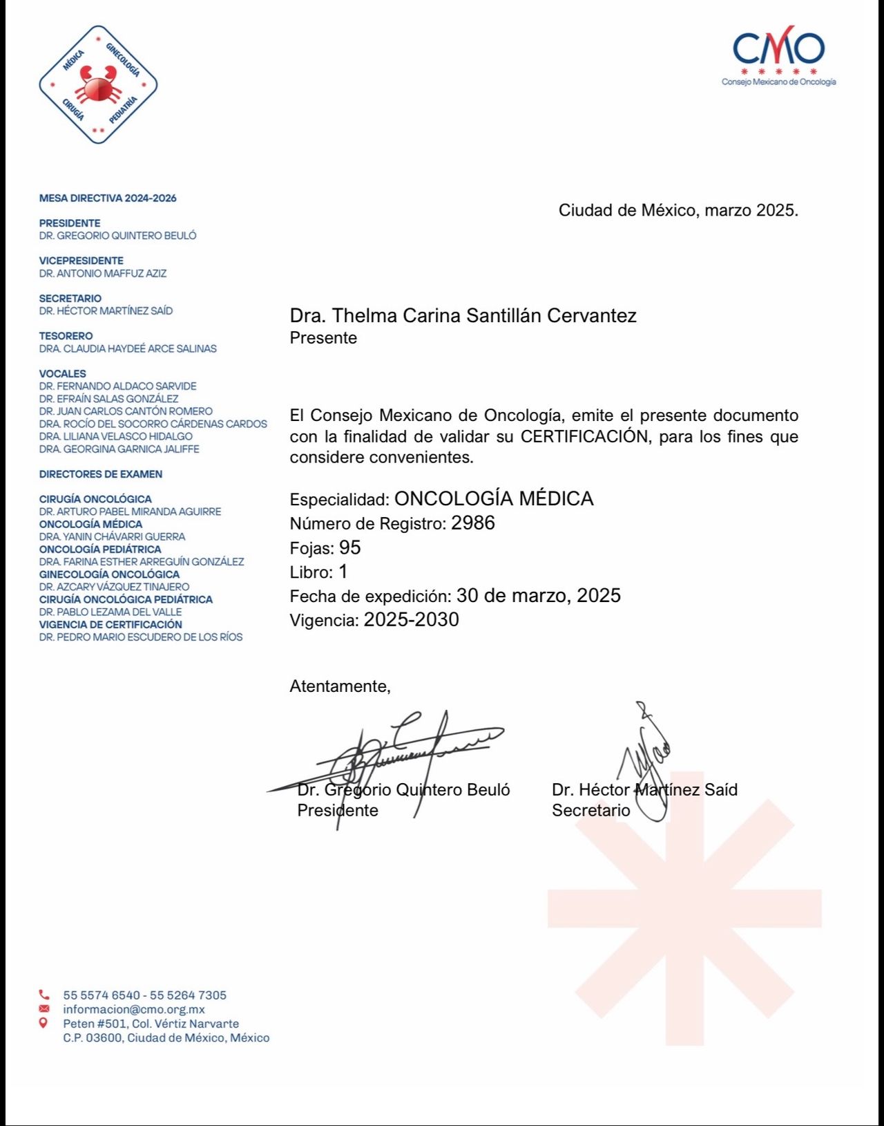 Soy la Dra. Thelma Carina Santillán Cervantez, oncóloga formada en el Hospital de Oncología Centro Médico Nacional Siglo XXI, institución de referencia a nivel nacional y el mayor hospital de concentración de enfermedades oncológicas en México.