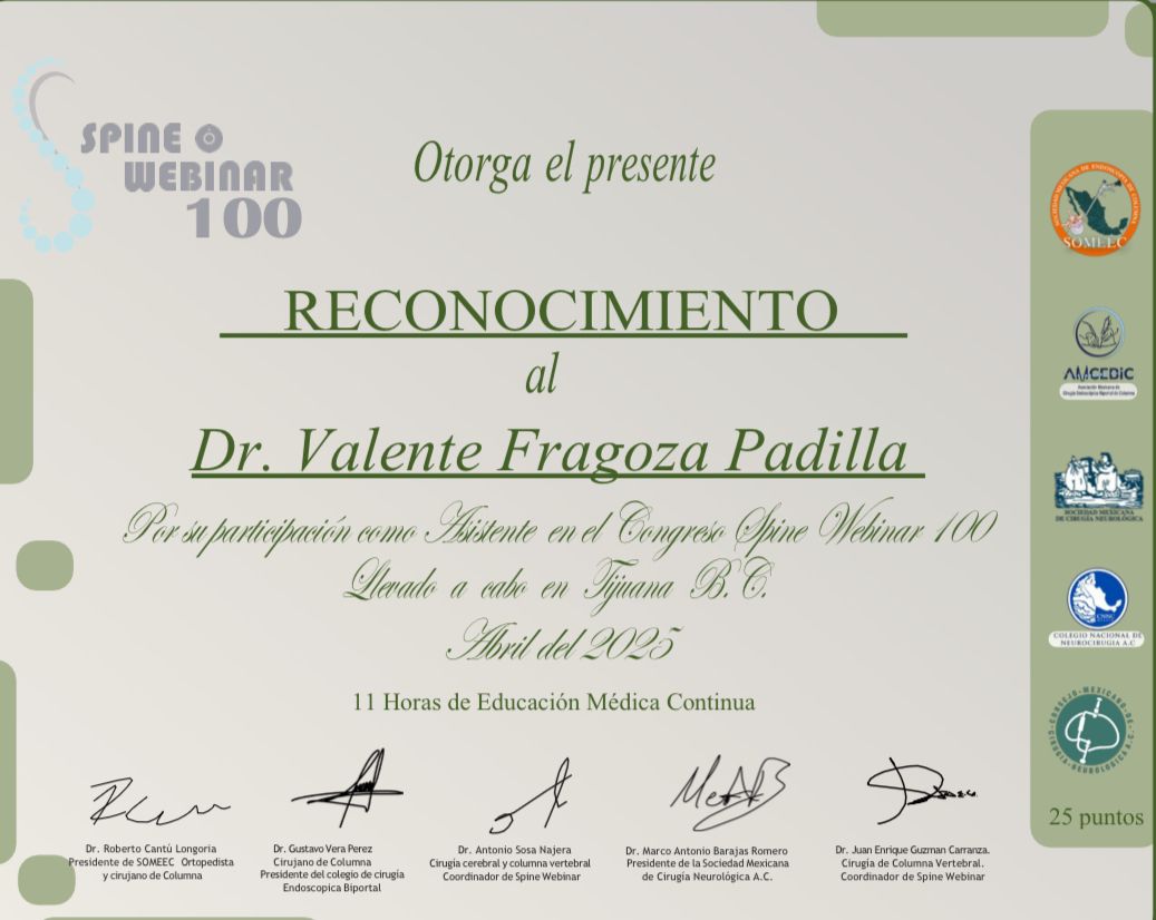 Después de una cirugía tubular por retiro de hernias discales, mi hijo de 22 años presentó mucho dolor debido a la ampliación de la disminución de espacios intervertebrales. Después de consultar a varios especialistas nos sugirieron consultar al Dr Fragoza viajamos 10 horas para llegar a Tijuana y obtener su opinión. Desde un inicio supimos que era el médico indicado, nos explicó a detalle las diferentes alternativas, revisó pacientemente las resonancias y todo su historial médico, hizo algunas pruebas físicas dando un tratamiento para el dolor, dio seguimiento médico vía telefónica y WhatsApp para resolver dudas y ver la disminución del dolor. Hace dos días le realizo una Radiofrecuencia. Sin duda el doctor Fragoza es un médico que trata de ponerse en el lugar de los pacientes, siendo empatico y de una calidad humana extraordinaria. Siempre a la vanguardia por aplicar todos sus conocimientos sin lucrar con la salud. Gracias Dr Fragoza y a todo su equipo médico.