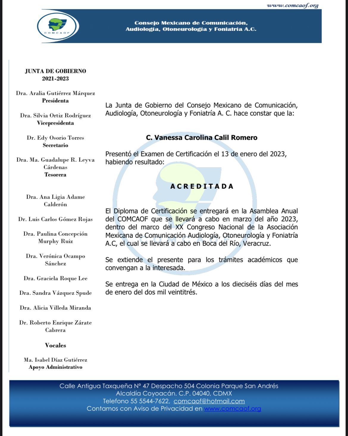 • Consultorio Dra. Vanessa Calil • Visita Audiología, Otoneurología y Foniatría •