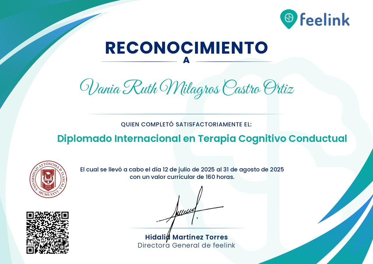 La psicóloga Vania es muy profesional, se nota tanto en su comunicación verbal como no verbal, además de tener un gran conocimiento y capacidad, agradezco mucho haberla encontrado.