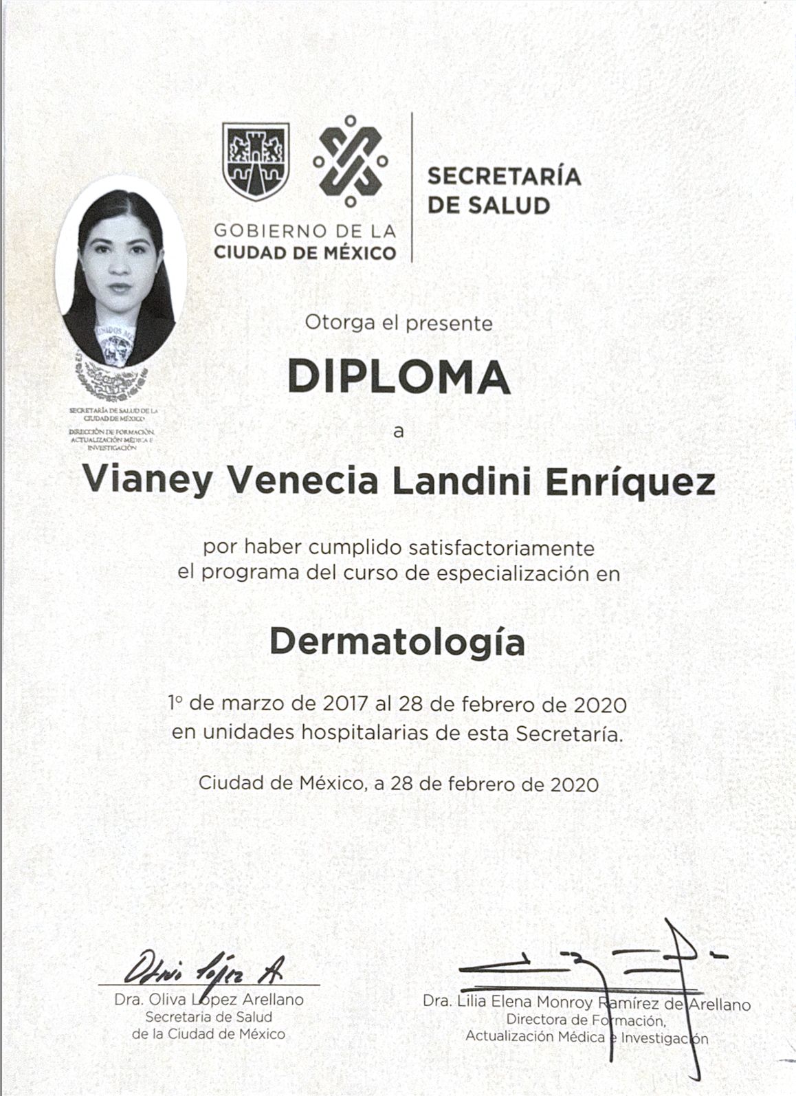 Soy la Dra. Venecia Landini Enríquez, Dermatóloga Certificada por el Consejo Mexicano de Dermatología.