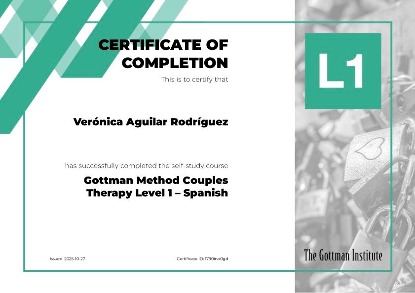Trabajo sobre la Terapia Cognitivo Conductual y el Método Gottman para parejas, el cual se basa en un analisis individual y de pareja para diseñar el tratamiento adecuado para los consultantes.