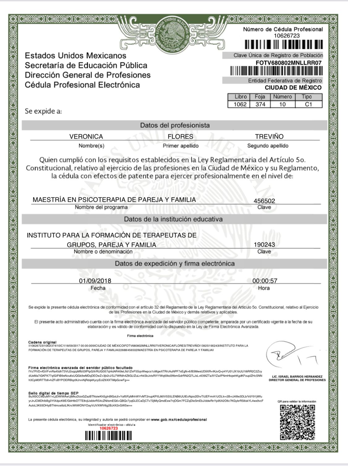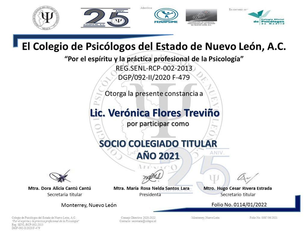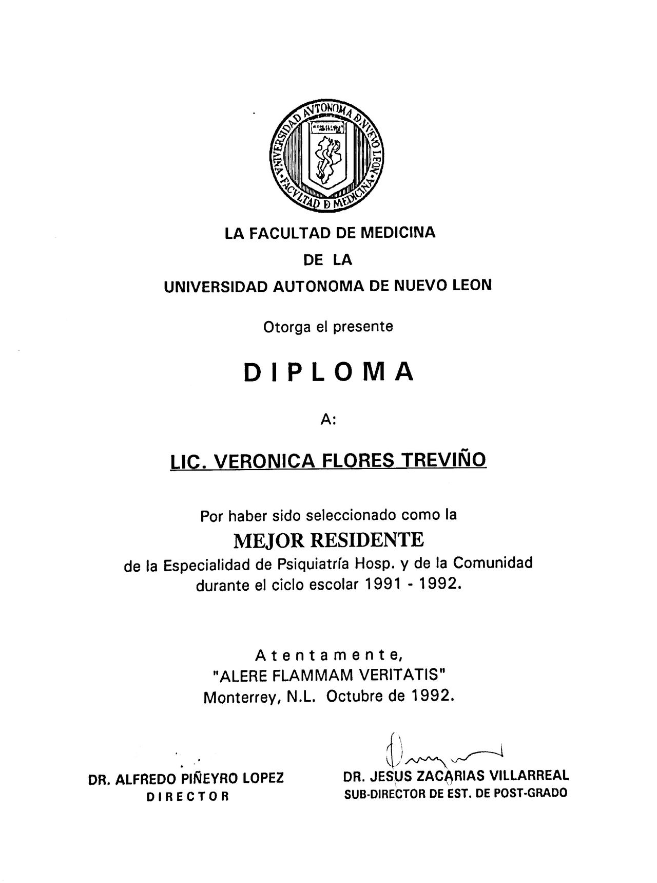 La Mtra. Verónica Flores Treviño ha desempeñado una destacada trayectoria de más de 32 años en el Departamento de Psiquiatría del Hospital Universitario "Dr. José E. González" de la U.A.N.L., tanto como profesora, como en su rol de coordinadora de la maestría de Psicoterapia Clínica Hospitalaria con Orientación en Pareja y Familia.
