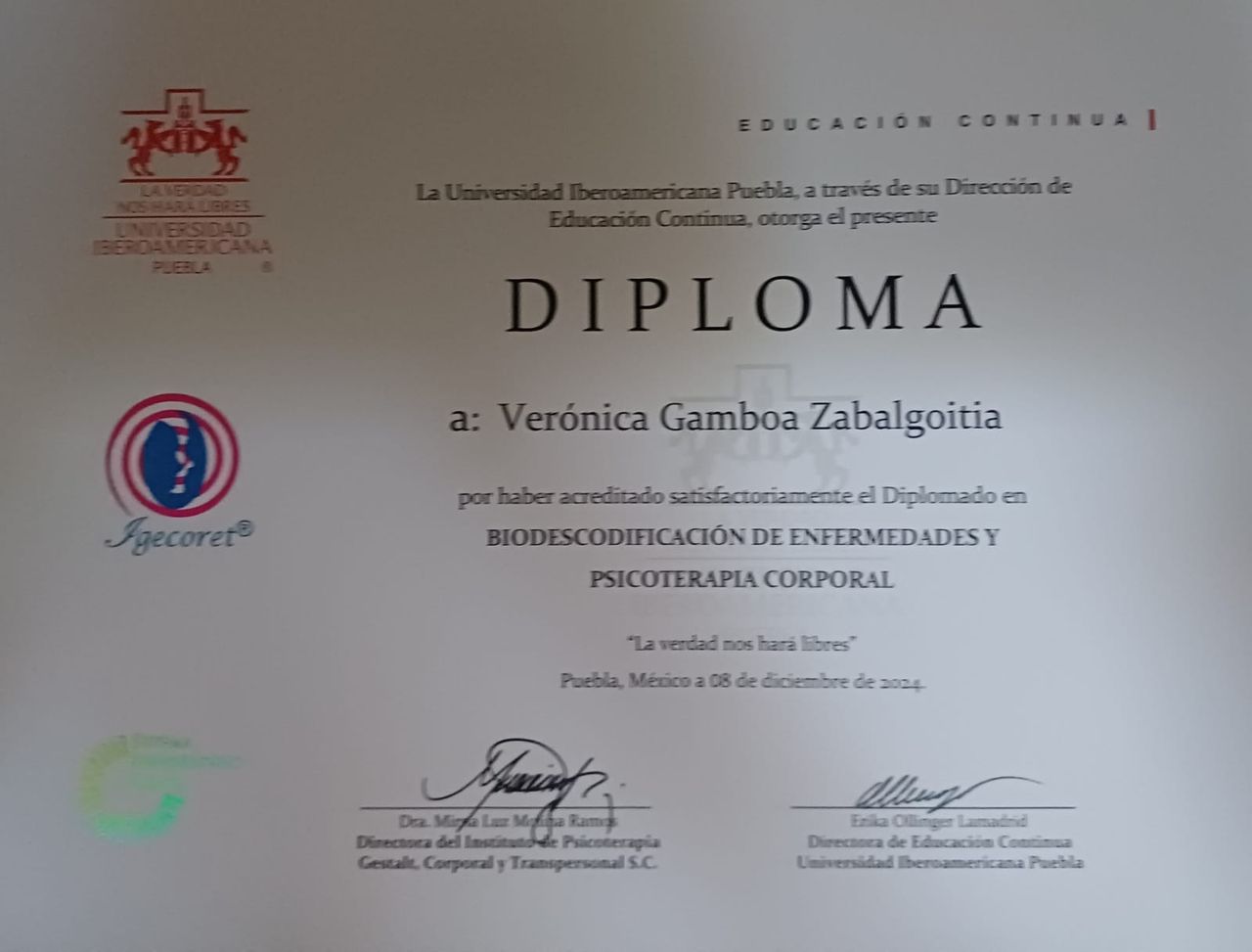 Aunado con mi reciente preparación de Descodificación Biológica de Enfermedades, me permite tener mas herramientas para reconocer desde un síntoma corporal y emocional, las heridas y "las historias congeladas" que reflejan tal sintomatología.