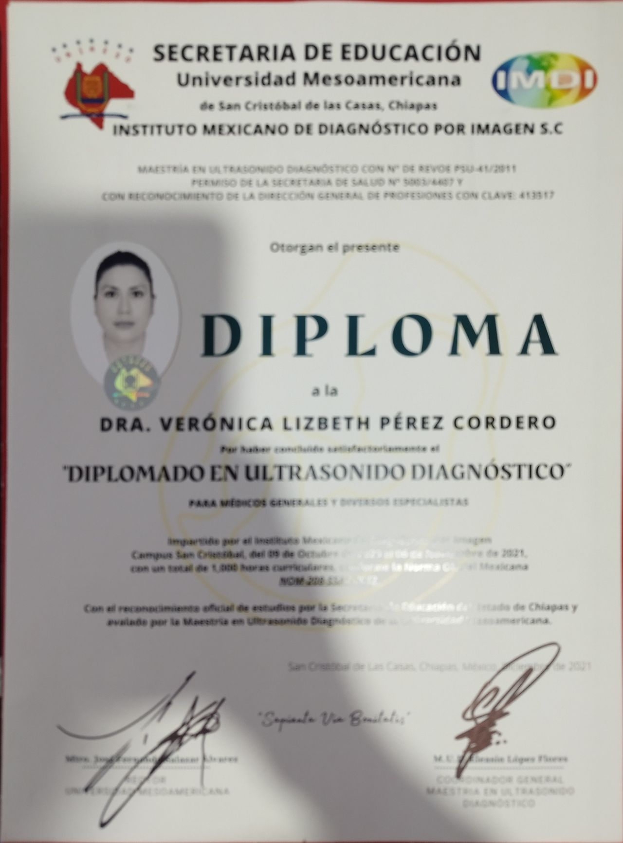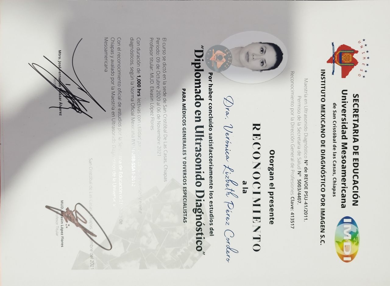 Cuento con un diplomado en ultrasonido diagnóstico.