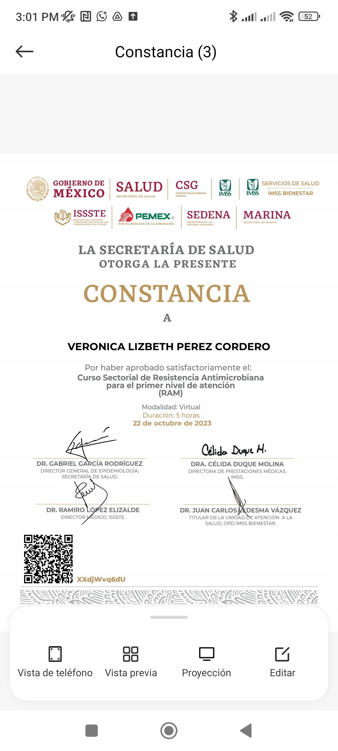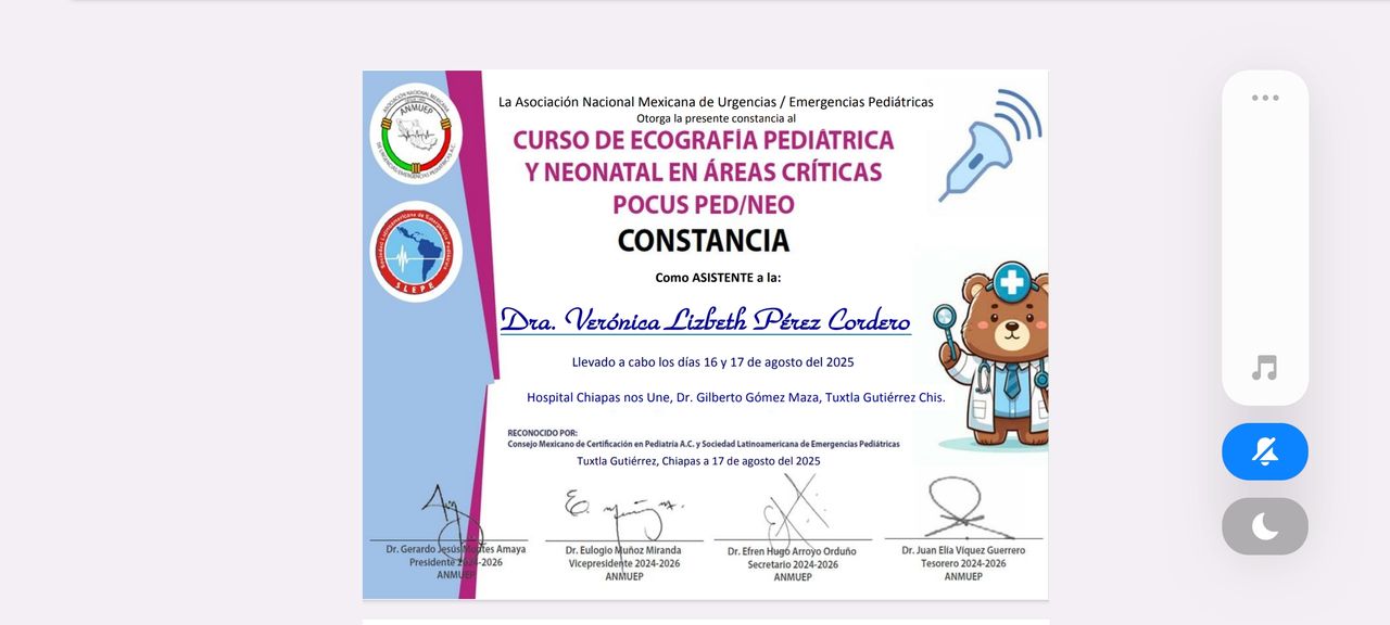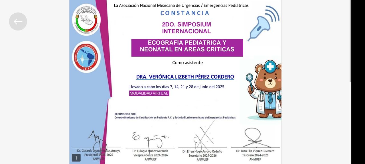 Especialidad en pediatría egresada del hospital de especialidades pediátricas (Tuxtla Gutiérrez).AVAL UNAM