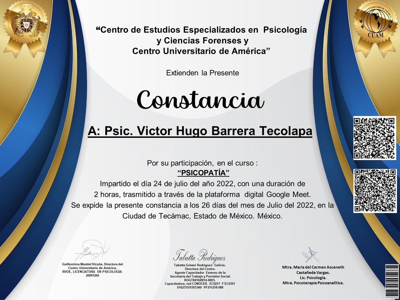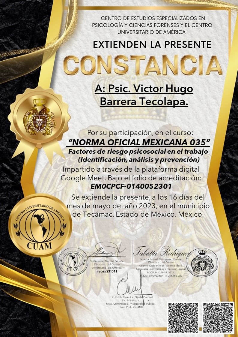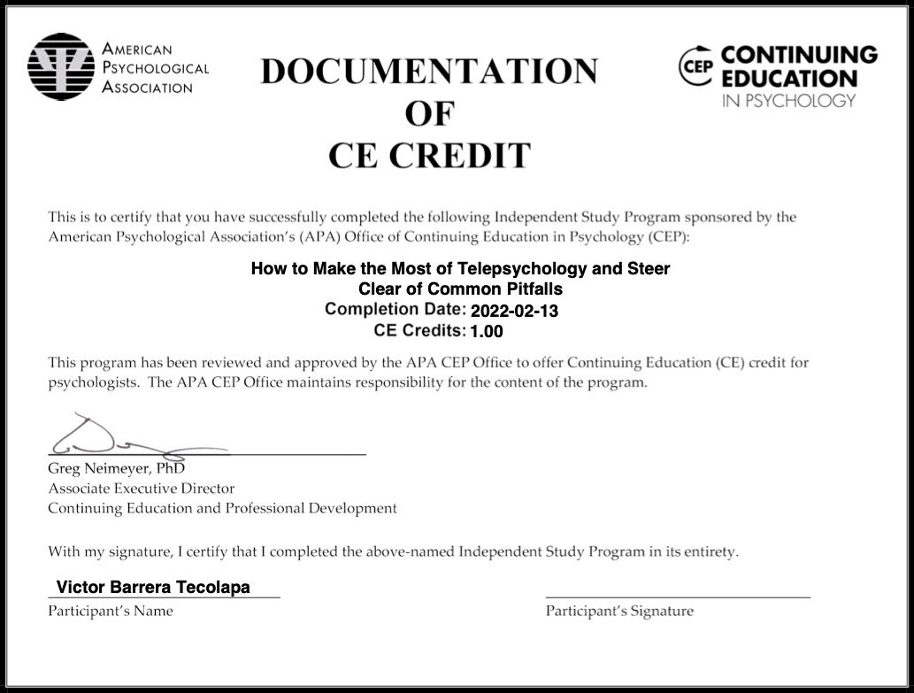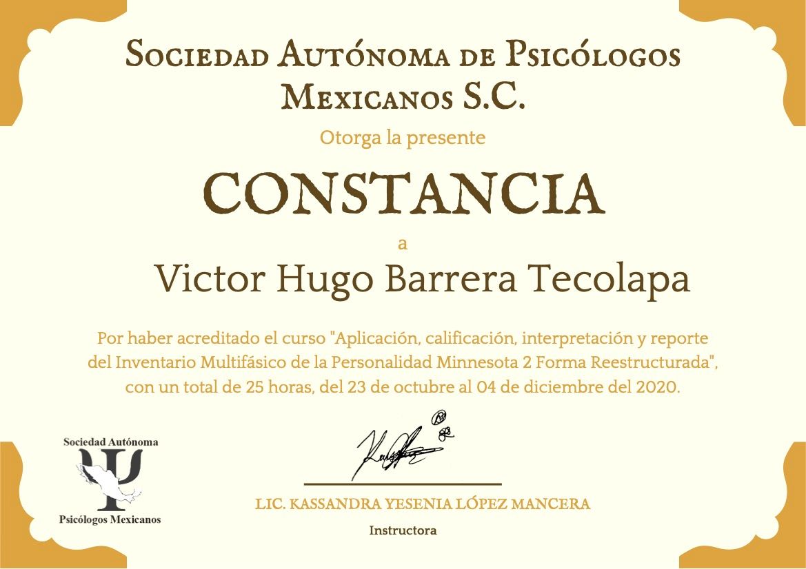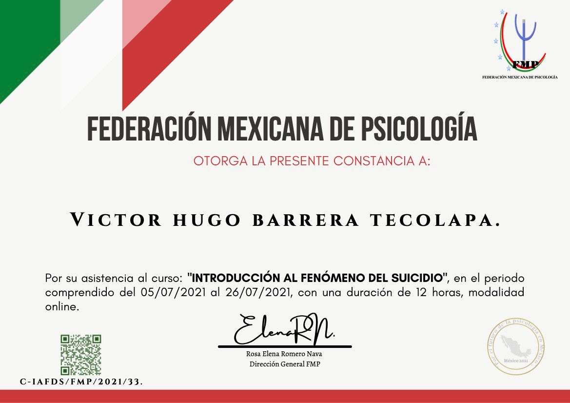 Después de varios psicólogos, encontré al psicólogo Víctor Barrera, con quien me he sentido con plena confianza para hablar sobre mis problemas y emociones, me siento guiada apoyada y sobre todo segura de su ética profesional y de que me da las herramientas necesarias, estoy muy agradecida, y lo recomiendo al 100%.
