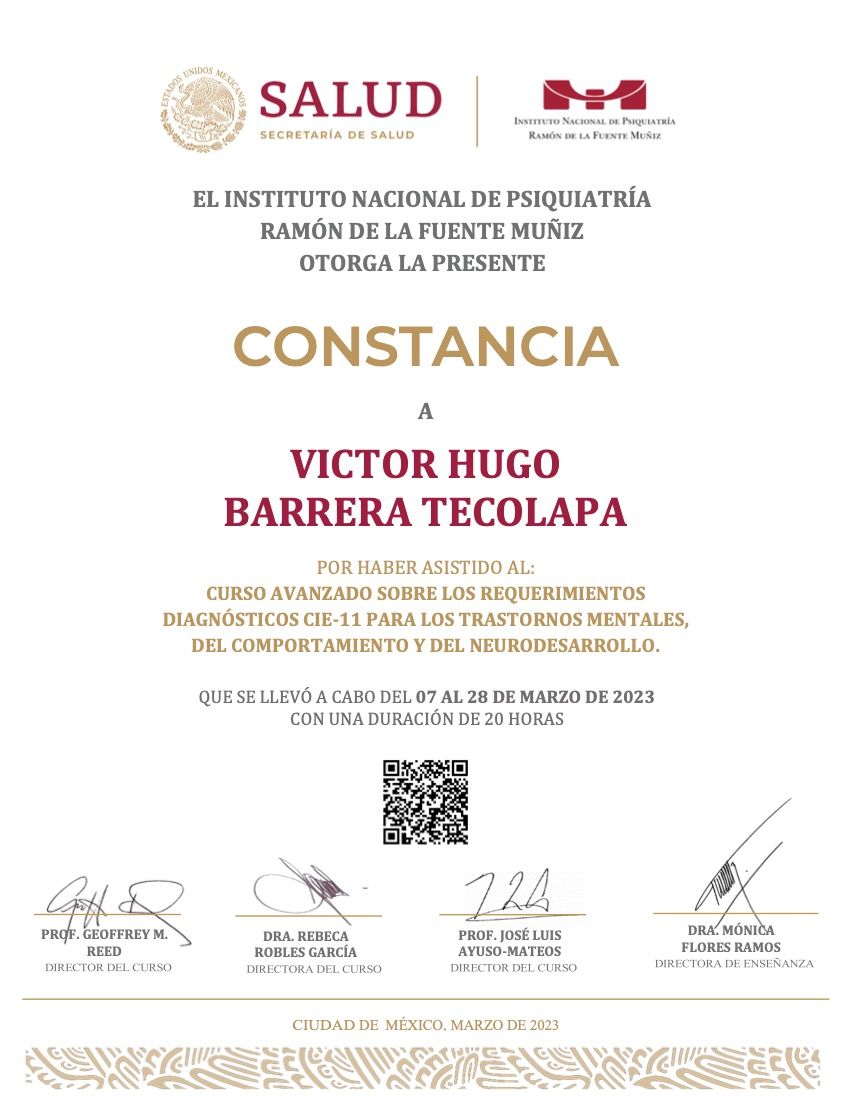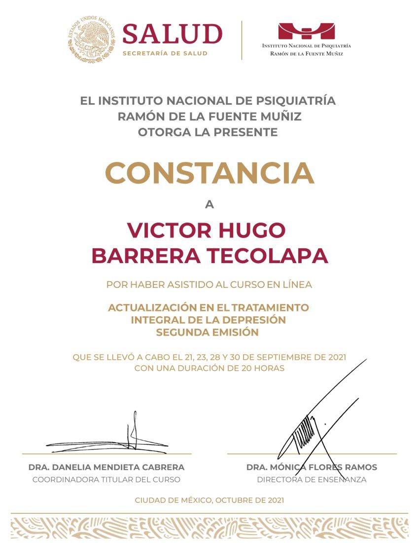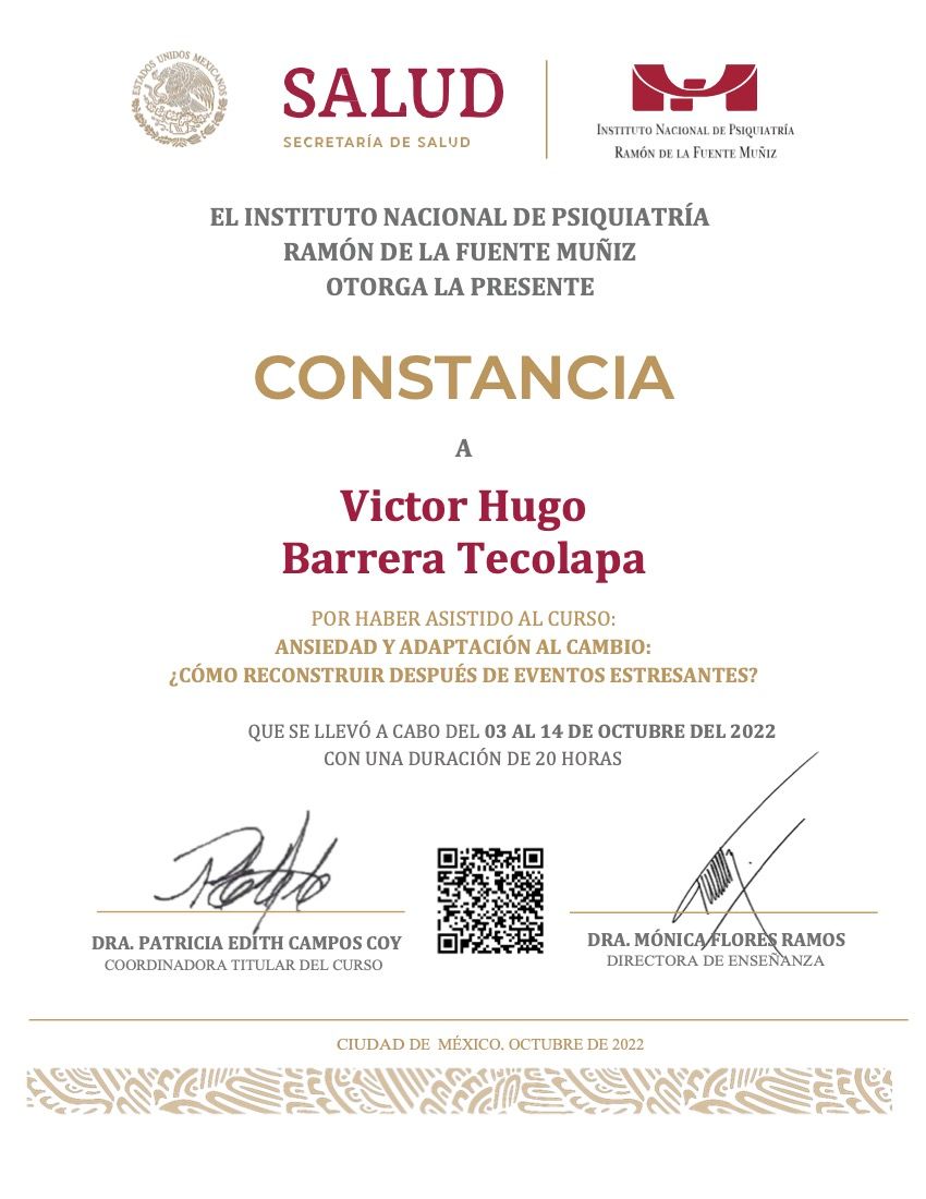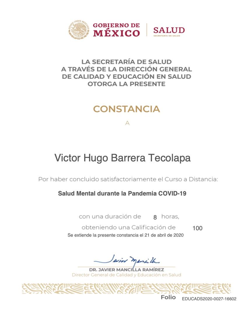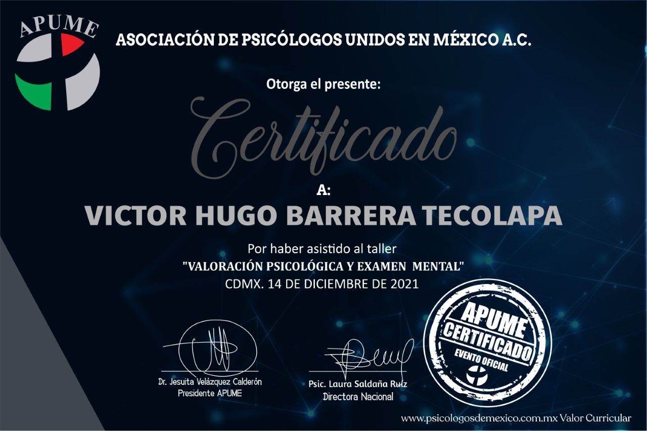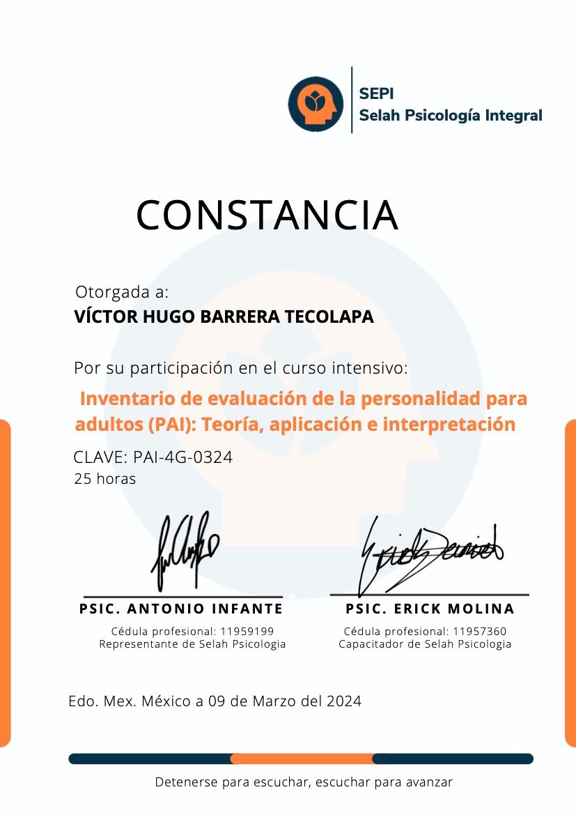 Hola, soy Victor Barrera, Psicólogo y Psicoterapeuta de adultos, mi modelo de intervención es el de la Terapia Cognitivo Conductual (TCC), he trabajado en el ámbito de la Salud Mental desde 2007. Me enfoco en provocar cambios mediante el tratamiento psicoterapéutico a través de la Terapia Cognitivo-Conductual. Me especializo en la evaluación, diagnóstico y tratamiento de la ansiedad, la depresión y el Trastorno de Estrés Postraumático (TEPT). Te ofrezco mi formación y experiencia profesional para modificar tu vida a través de la psicoterapia.