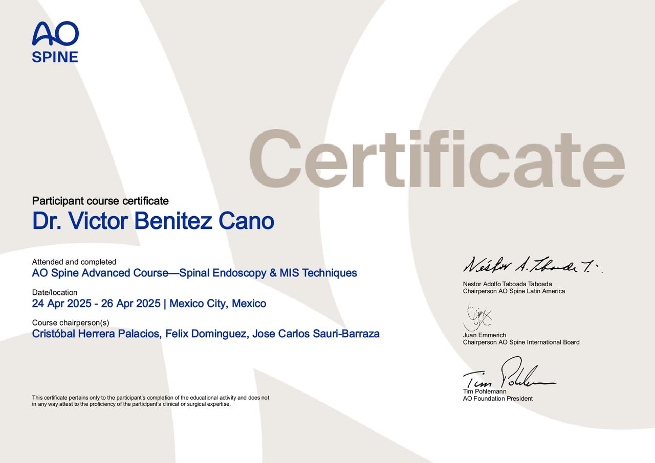 Estoy certificado por el Consejo Mexicano de Cirugía Neurológica, además de contar con formación en cirugía de mínima invasión.