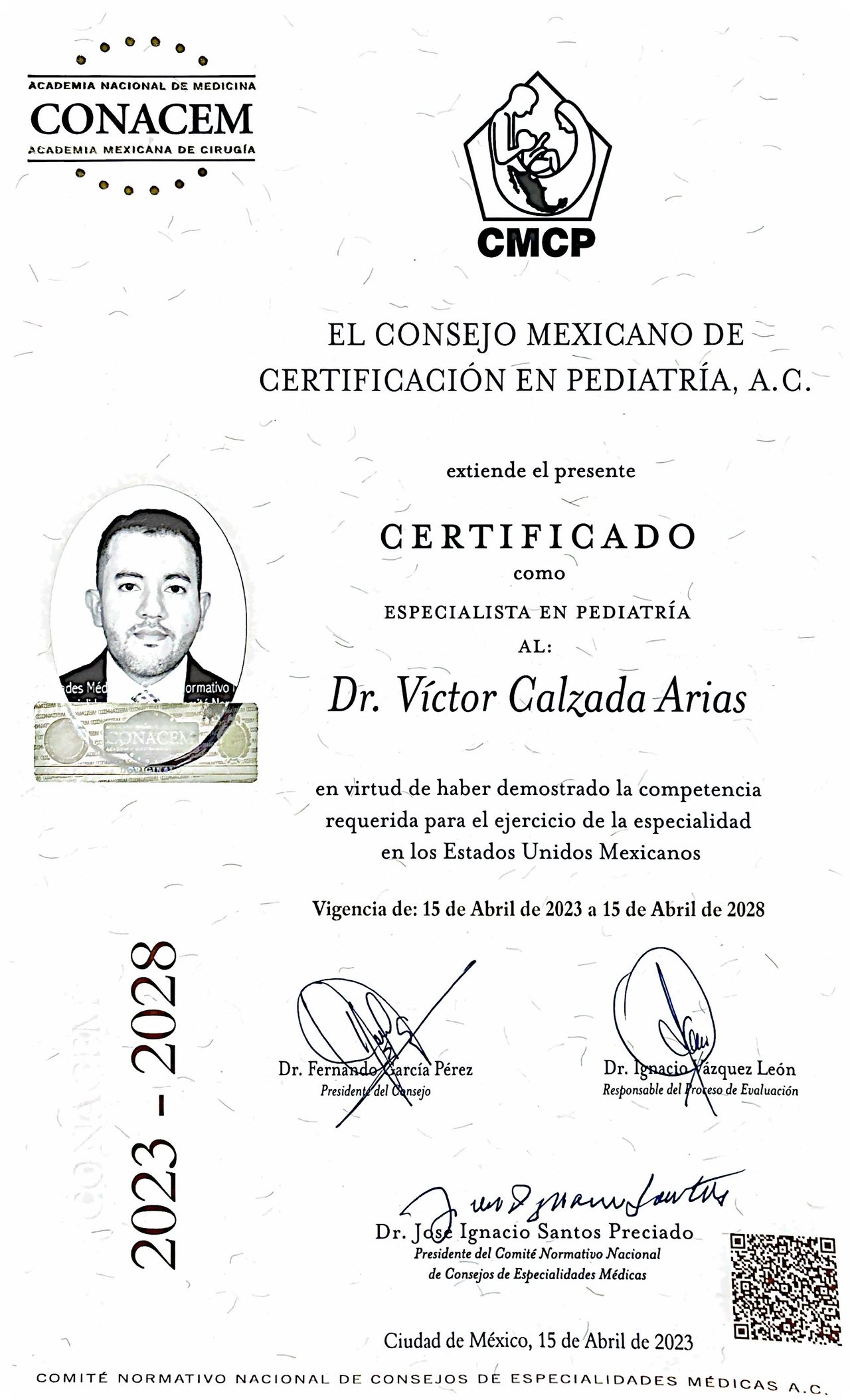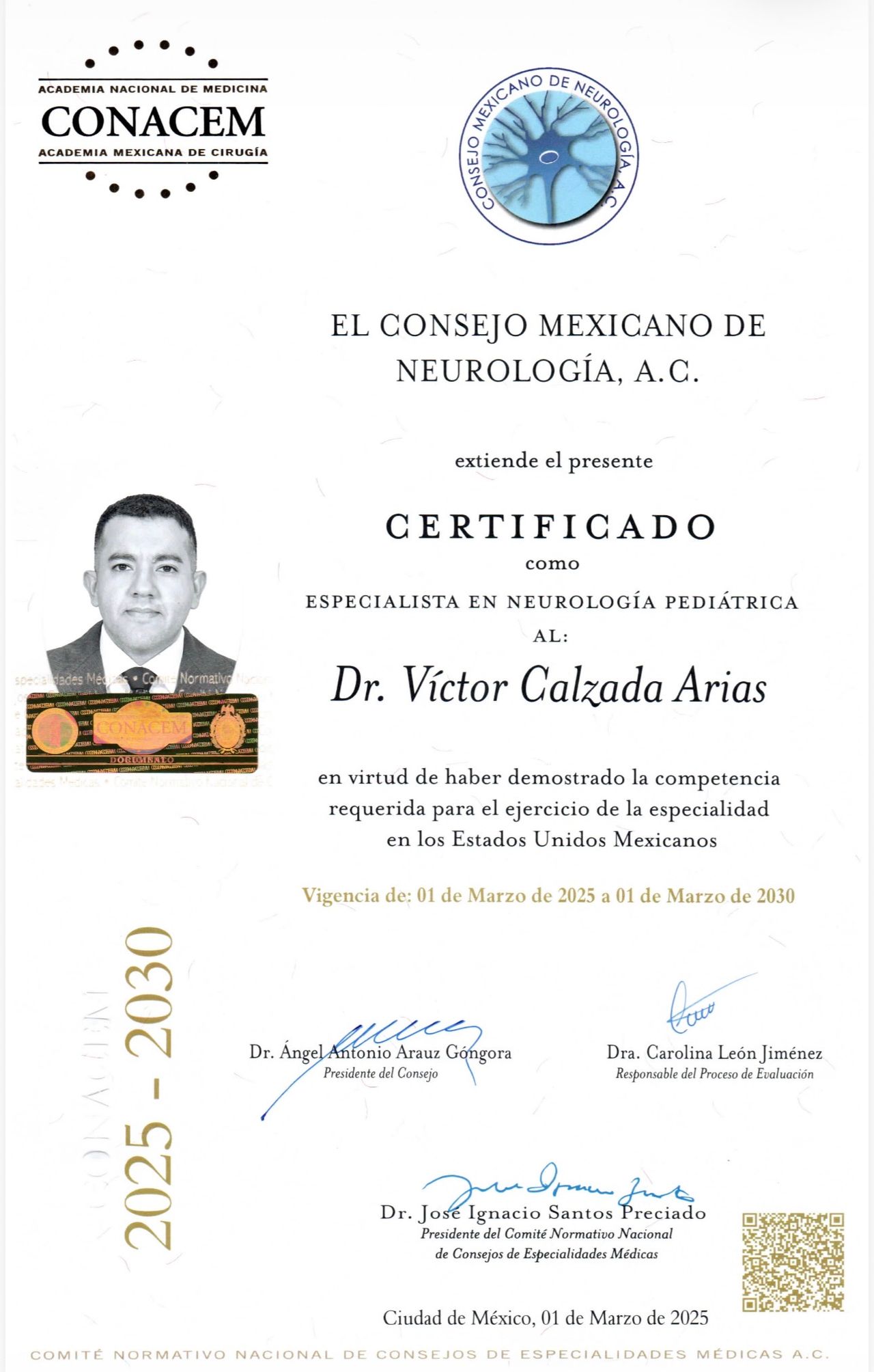 Estoy certificado ante los Consejos de Pediatría y Neurología y en constante actualización mediante congresos y cursos nacionales e internacionales.