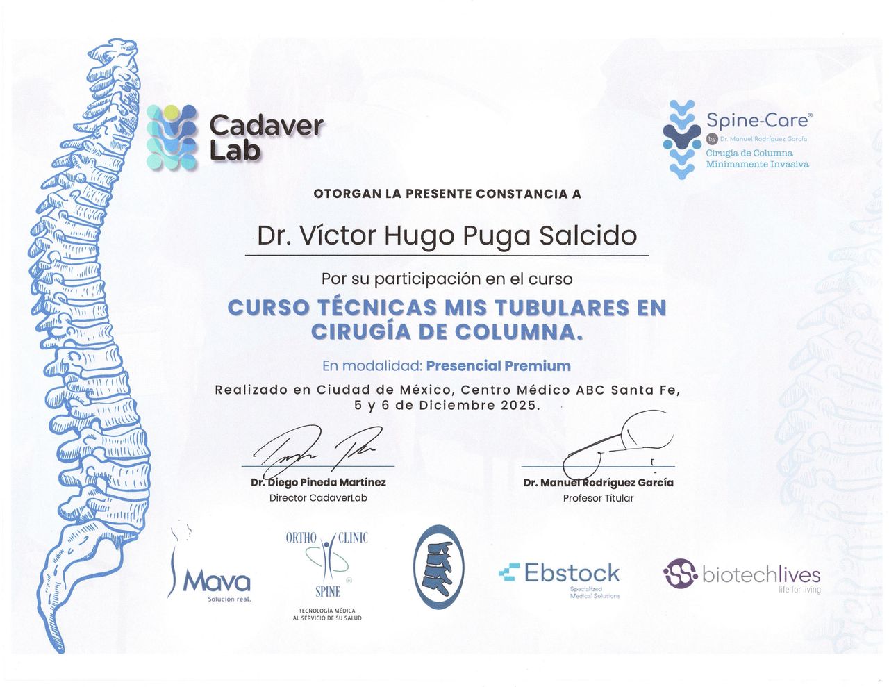 Cirugía Endoscópica de Columna: Adiestramiento internacional en Bogotá, Colombia, así como formación especializada y el Centro Médico ABC en la Ciudad de México.