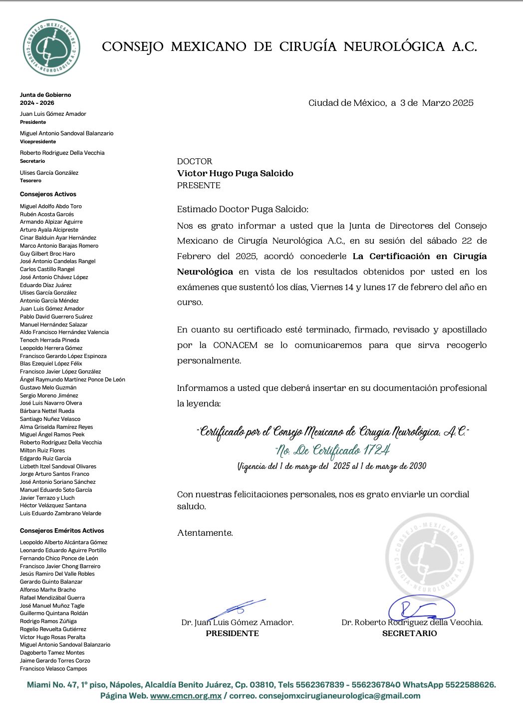 • Hospital Colima, Consultorio #10 • Cirugía de lesiones cerebrales •