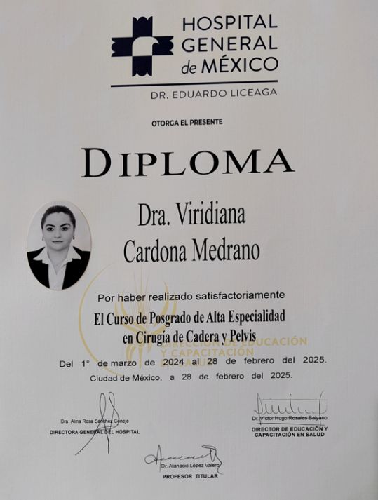 Soy especialista en cirugía ortopédica con alta especialidad en cirugía de cadera y pelvis, comprometida con ofrecerte el mejor cuidado y soluciones personalizadas para tus necesidades ortopédicas.