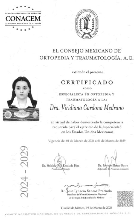 • Dra. Viridiana Cardona Torre 1 C1102 • Visita Ortopedia •