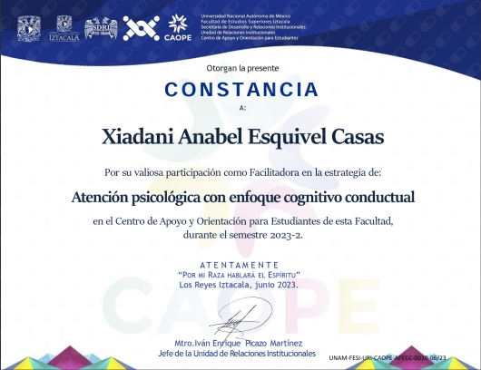 • Centro de Desarrollo Psicológico y Educativo Xhiare • Terapia cognitivo-conductual (TCC) •