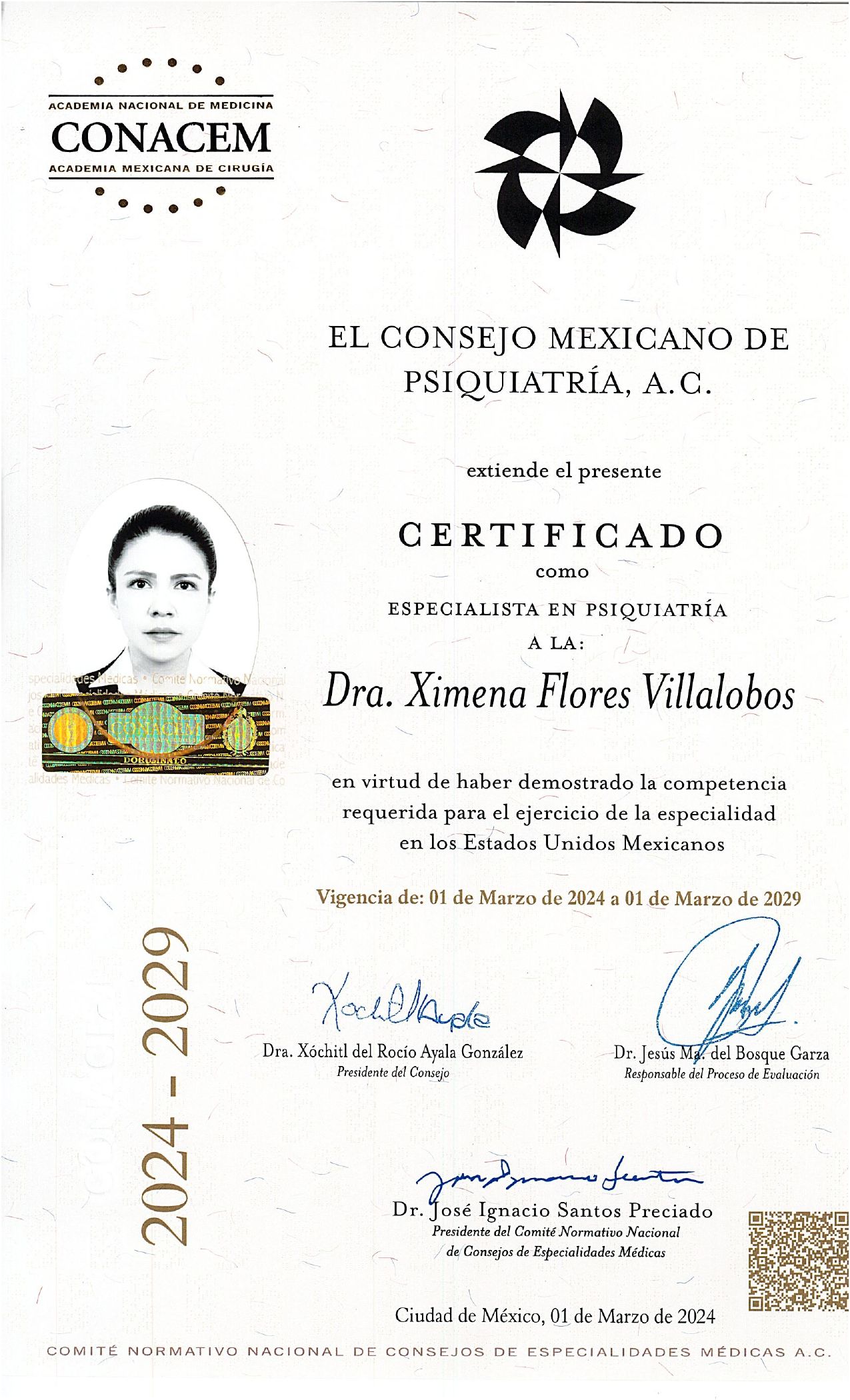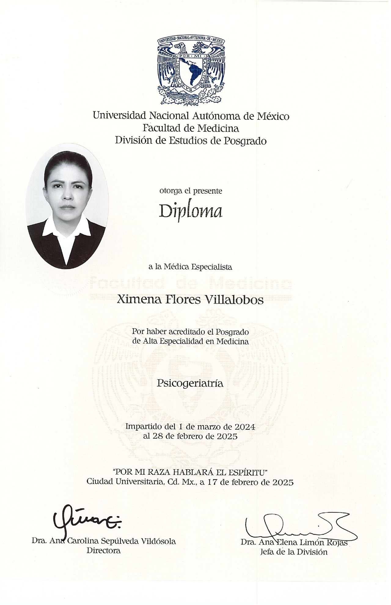 Cuento además con una alta especialidad en Psicogeriatría, enfocada en la evaluación, diagnóstico y tratamiento de los trastornos mentales en el Adulto Mayor, incluyendo demencias, cambios conductuales y dificultades emocionales relacionadas con el proceso de envejecimiento.