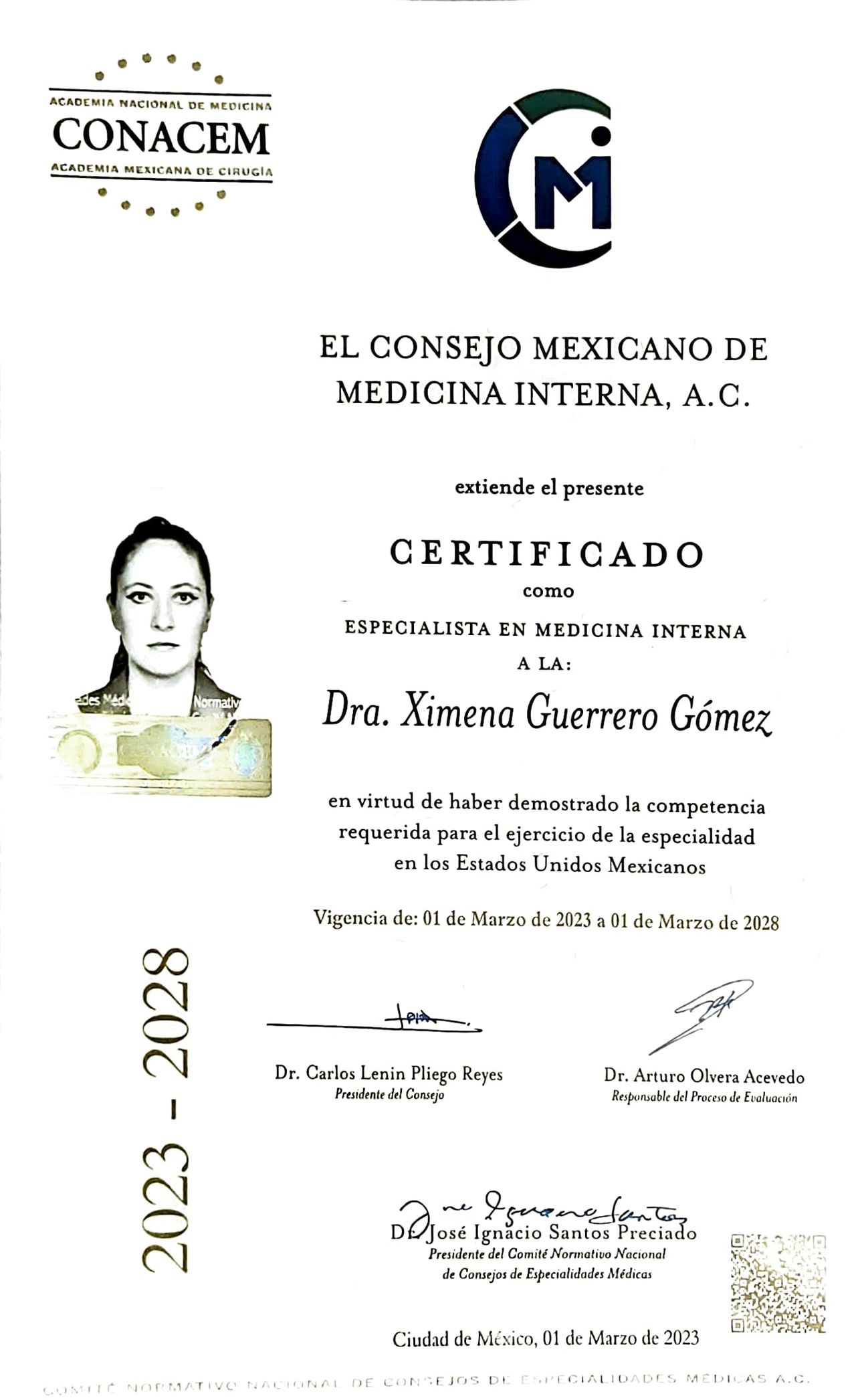 Soy Medico Internista, estoy certificada por el Consejo Mexicano de Medicina Interna. Doy consulta en Tijuana y Ensenada.