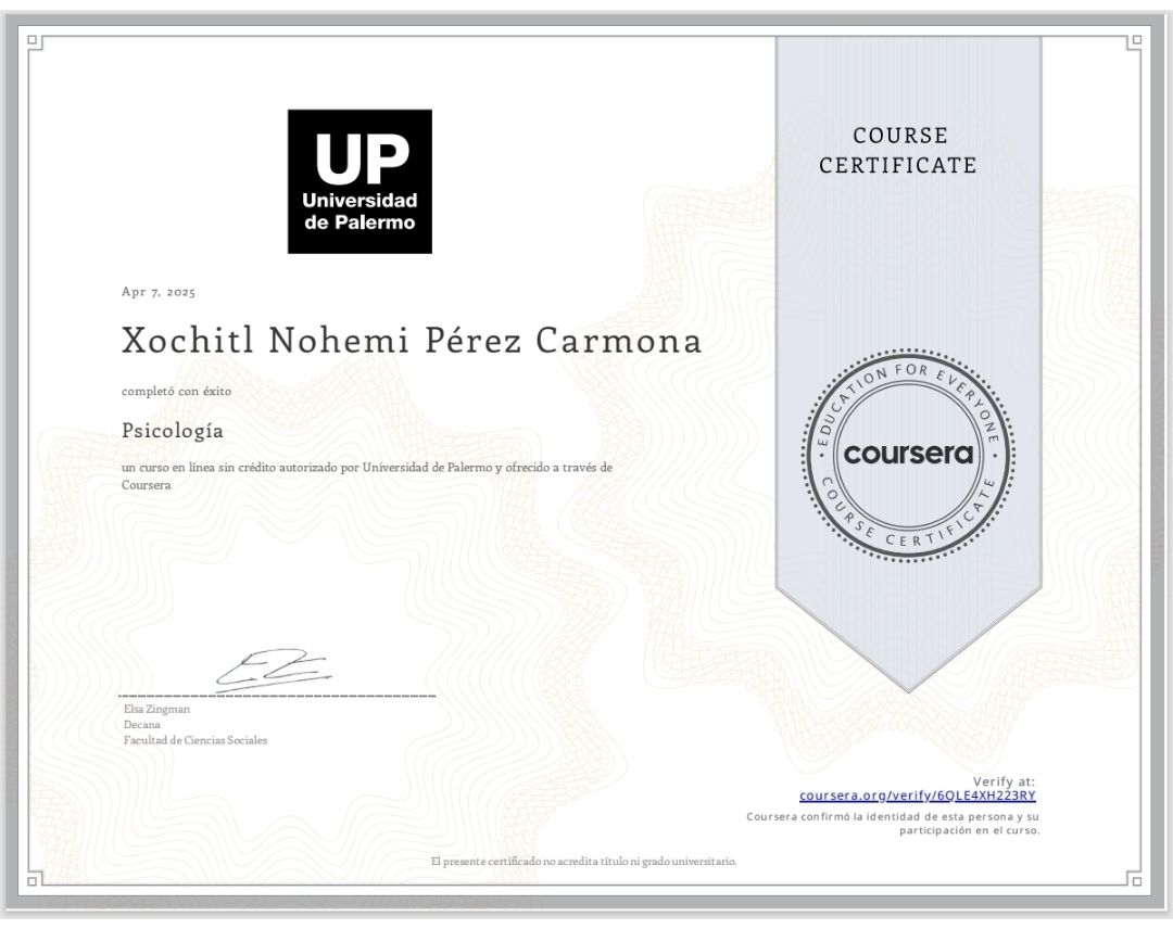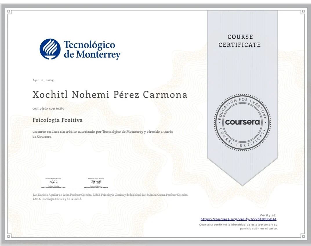 Tuve la oportunidad de atenderme con la psicóloga Xóchitl Carmona y realmente ha sido una experiencia transformadora. Desde la primera sesión transmite confianza, empatía y un profundo profesionalismo. Me ayudó a comprender aspectos de mí que no había notado y a encontrar herramientas reales para mejorar mi bienestar emocional. Sin duda, la recomiendo a cualquier persona que busque una guía comprometida, humana y preparada.