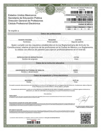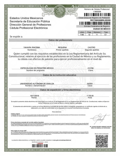 Cómo neonatóloga pediatra certificada, me especializo en diagnóstico y tratamiento integral pediátrica y pediátrica neonatal con afecciones tales como infecciones, defectos congénitos, y trastornos respiratorios. Soy experta en consulta pediátrica, pediátrica neonatal y de alta especialidad, cólicos, bronquitis, tos, gripe, infecciones en vías respiratorias, cordón umbilical, lactancia materna, reanimación cardiopulmonar neonatal, entre otras. "Yo me encargo de su salud, tu de su felicidad" Dra. Yahaira Iracema Requena Castro Neonatóloga Pediatra Certificada UAS · Céd. Esp. 12552168 Clínica de Especialidades Pediátricas Col. Centro, Culiacán, Sinaloa