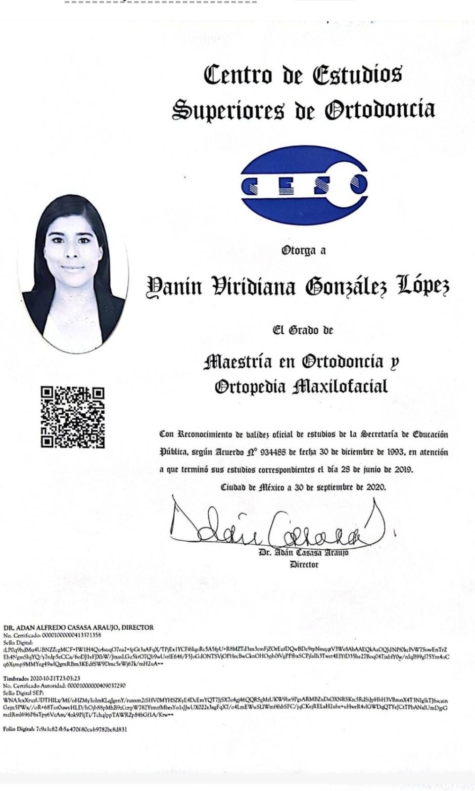 Soy la Dra. Yanin Viridiana González fundadora de Dental YV Orthodontics y creo profundamente en el poder que tiene una sonrisa para transformar la vida de una persona. Mi pasión es acompañar a mis pacientes en ese proceso, escucharlos y ayudarlos a sentirse seguros y orgullosos de su sonrisa. Soy especialista en Ortodoncia y Ortodoncia Invisible con Invisalign.