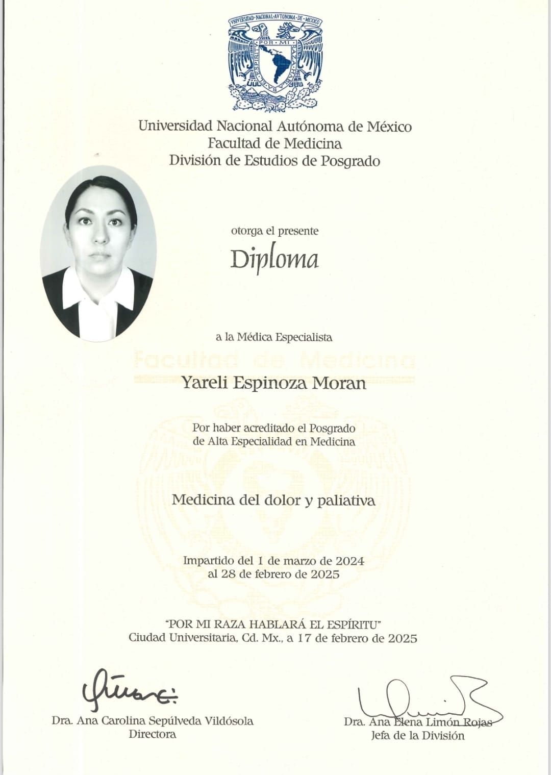 Me formé como médico cirujano en la Universidad Autónoma Metropolitana y realice la especialidad en psiquiatría en el Hospital Psiquiátrico Fray Bernardino Álvarez posteriormente mi interés por ayudar a la personas con enfermedades crónicas o potencialmente mortales me llevo a estudiar un alta especialidad en medicina del dolor y cuidados paliativos en el Instituto Nacional de Cancerología, esto a su vez me hizo ver la necesidad de poder otorgar acompañamiento por lo que también tome un diplomado en Tanatología y aunque este es un campo que me apasiona no puedo dejar de lado la actualización constante en temas de psiquiatría por lo que continuo tomando cursos de actualización para poder ofrecer una mejor atención.