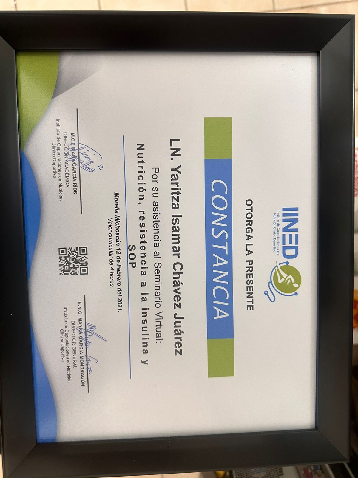 - Actualmente se está cursando la certificación de experto en nutrición en síndrome de ovario poliquístico y endometriosis