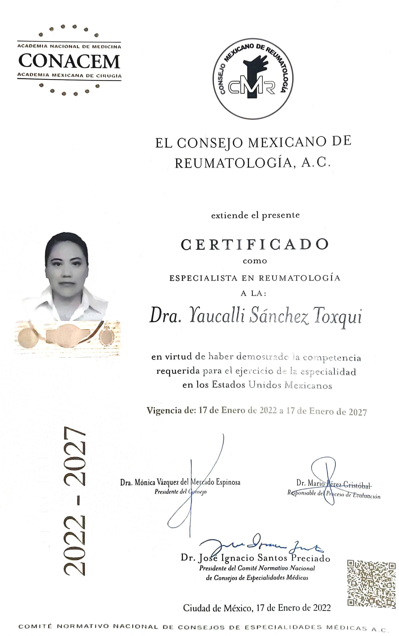 Soy la Dra. Yaucalli Sánchez Toxqui, especialista en Reumatología y Medicina Interna, me dedico a diagnosticar y tratar enfermedades musculoesqueléticas, autoinmunes sistémicas y metabólicas.