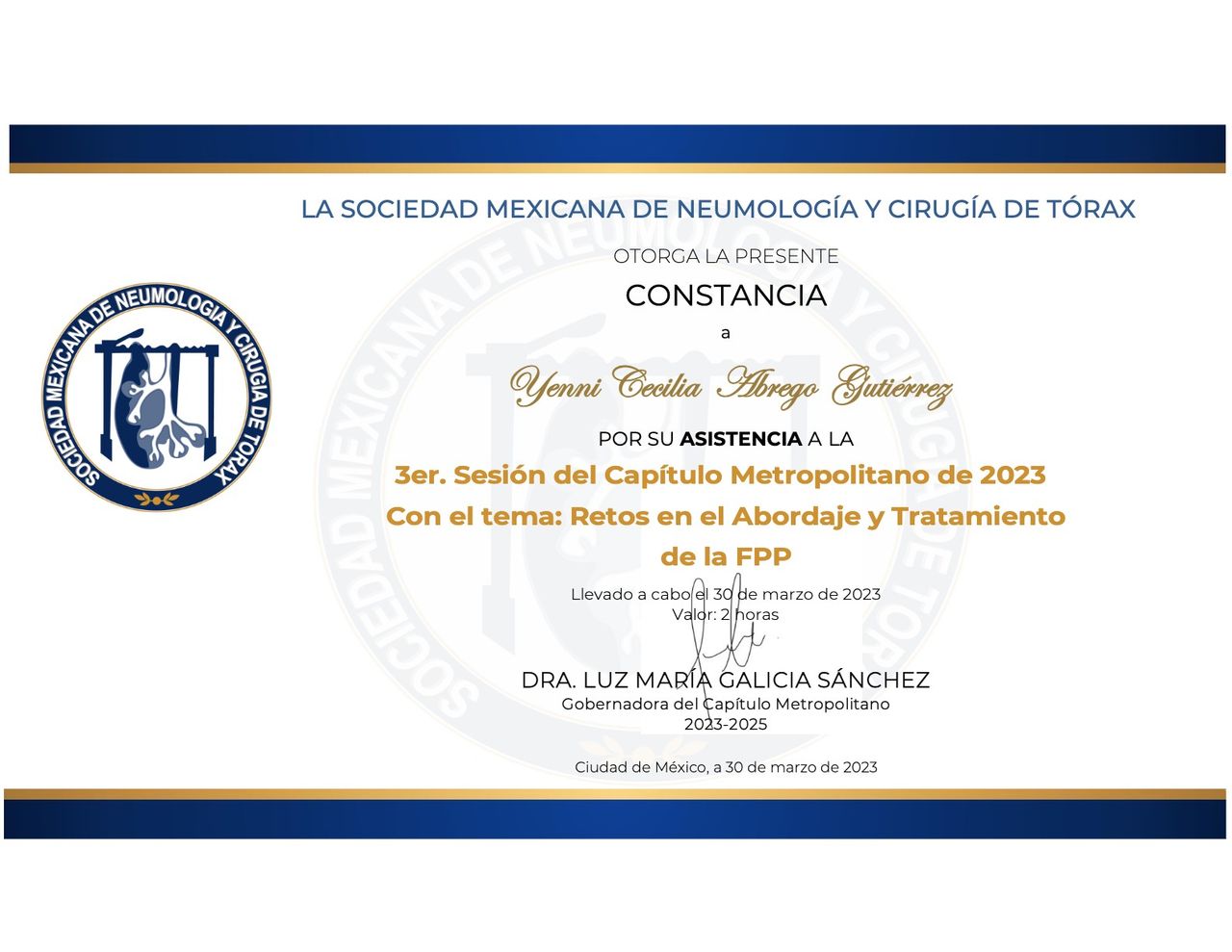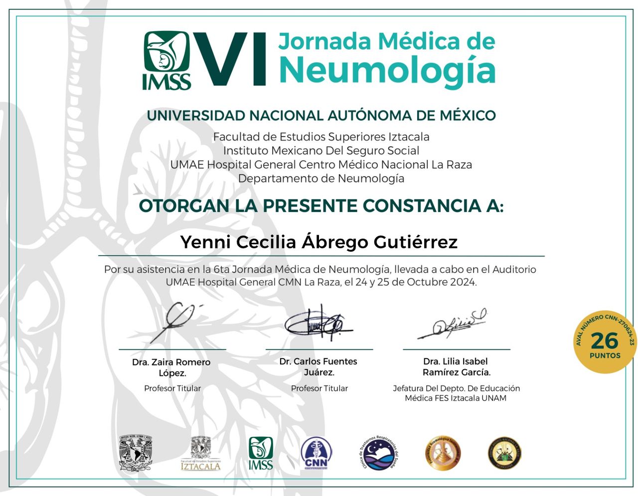 Me caracterizo por un enfoque centrado en el paciente, priorizando la atención personalizada, la prevención y la educación en salud respiratoria. Poseo habilidades para la interpretación de estudios especializados y el manejo de terapias avanzadas, orientadas a mejorar la calidad de vida de los pacientes.